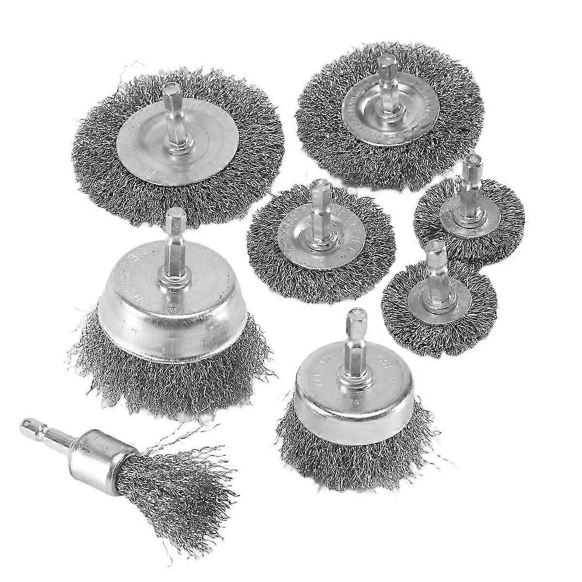 8 Piece Wire Brush Wheel Cup Brush Set 1/4Inch Hex Shank