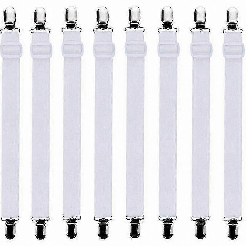 8-Pack Adjustable Fitted Sheet Holders, Fits Beds and Mattresses 30-120cm, White