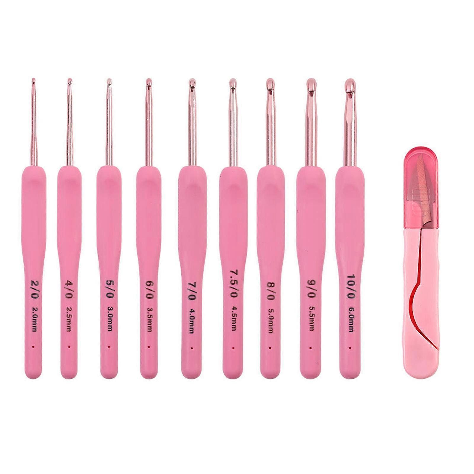 9Pcs Crochet Hook 2.0mm-6.0mm Soft Ergonomic Grip Aluminum Crochet Hook With Scissors and Case For Knitting Project Multicolor