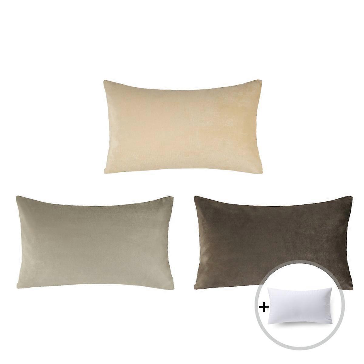 Phantoscope Designer's Choice Decorative Throw Pillow Bundle Set, Light Coffee Gradient Silky Velvet Series Covers with inserts, 12" x 20", 3 Pack