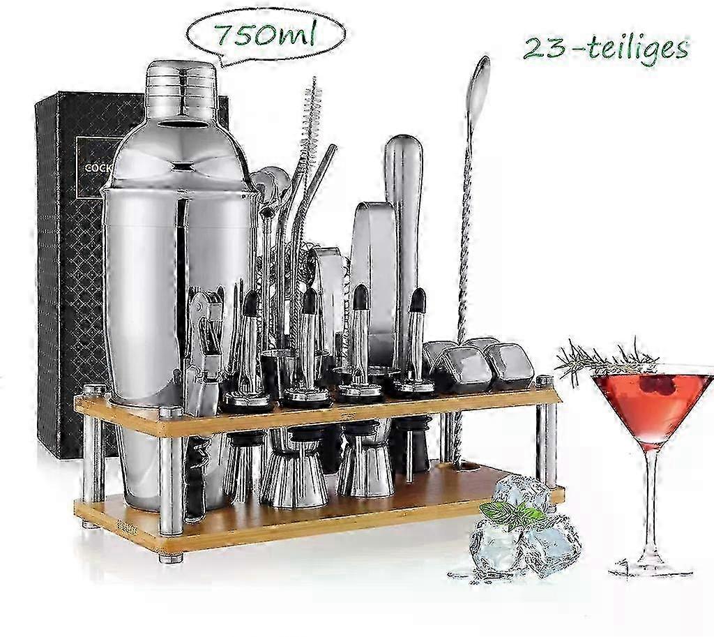 Premium Stainless Steel Bar Set with 750ml Shaker, Bartending Tools & Bamboo Stand - Complete 23-Piece Bartender Kit