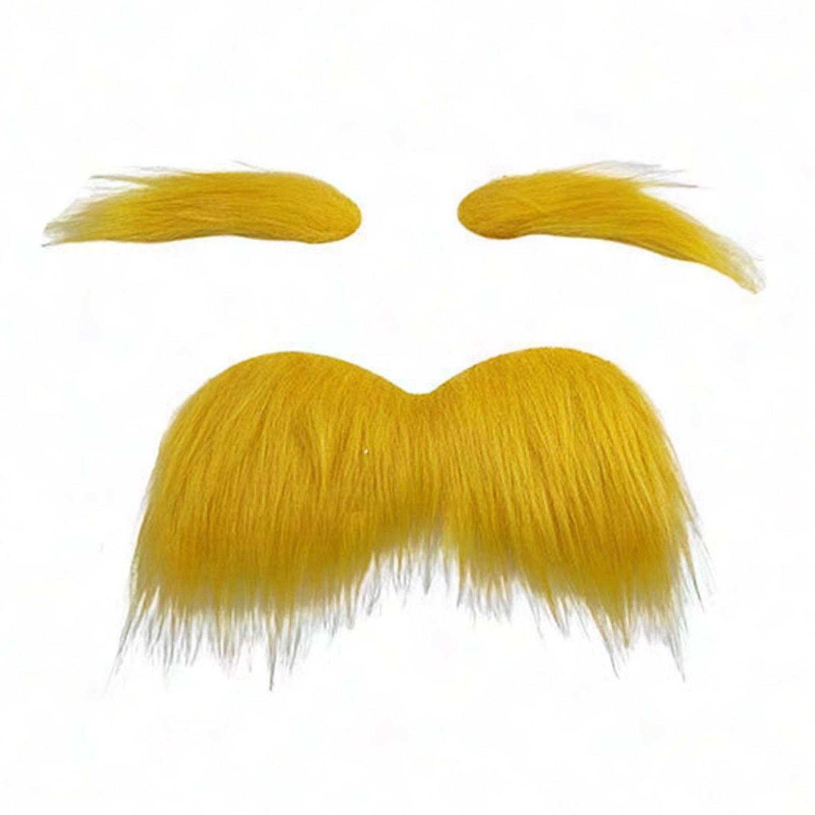 Yellow Self-Adhesive Fake Beard Mustache and Eyebrows Set for Halloween Christmas