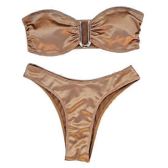 2 Pcs/Set Women Summer Bikini Set Off Shoulder Strapless Satin Elastic Quick Dry Padded Wireless Hot