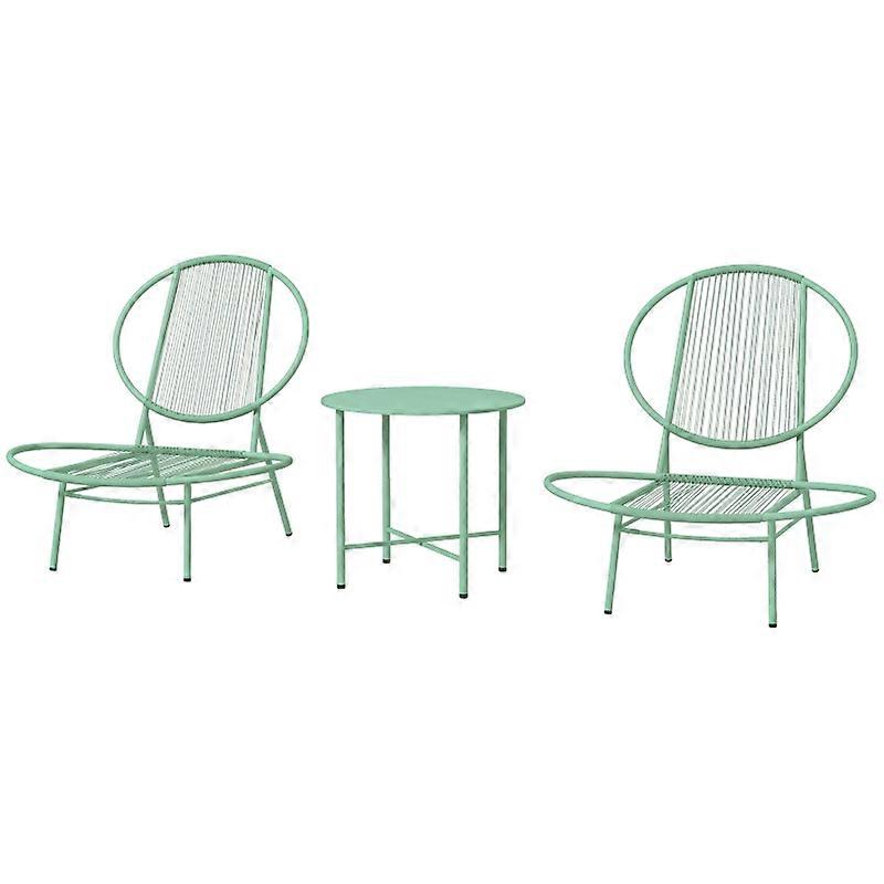 Outdoor Steel Bistro Set with Table and 2 Ergonomic Shell Chairs Green Weatherp