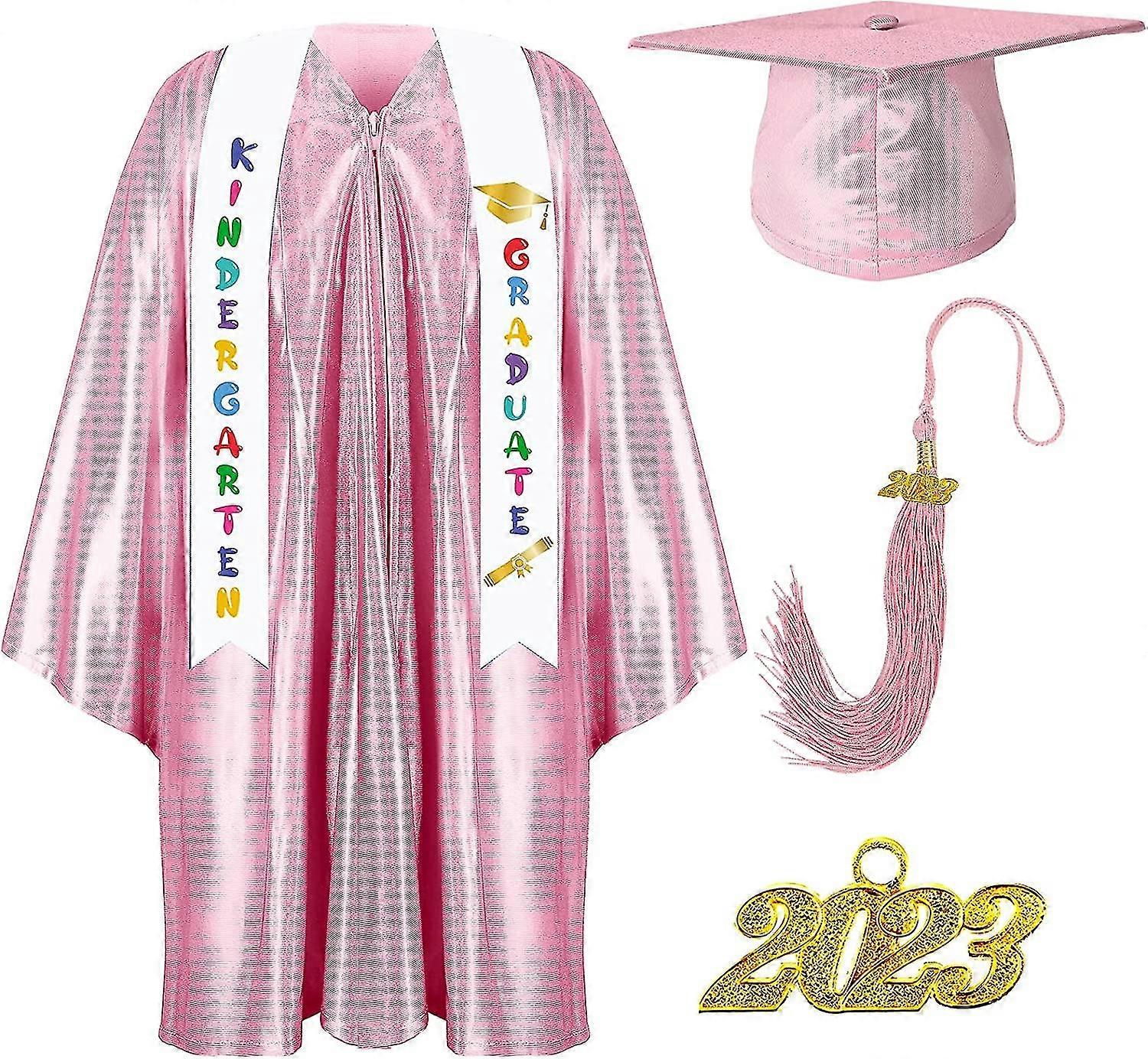 2023 Kids Graduation Gown Cap Set with Printed Stole & Charm, Preschool Kindergarten Ceremony Attire (Polyester)