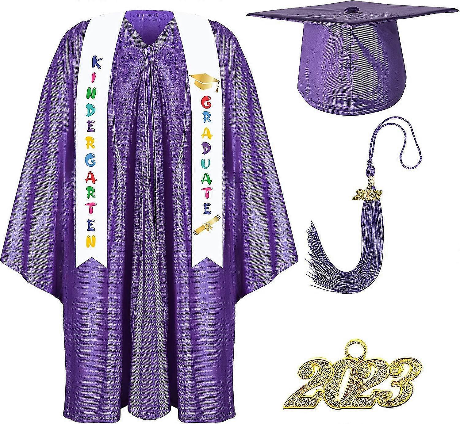2023 Kids Graduation Gown Cap Set with Printed Stole & Charm, Preschool Kindergarten Ceremony Attire (Polyester)