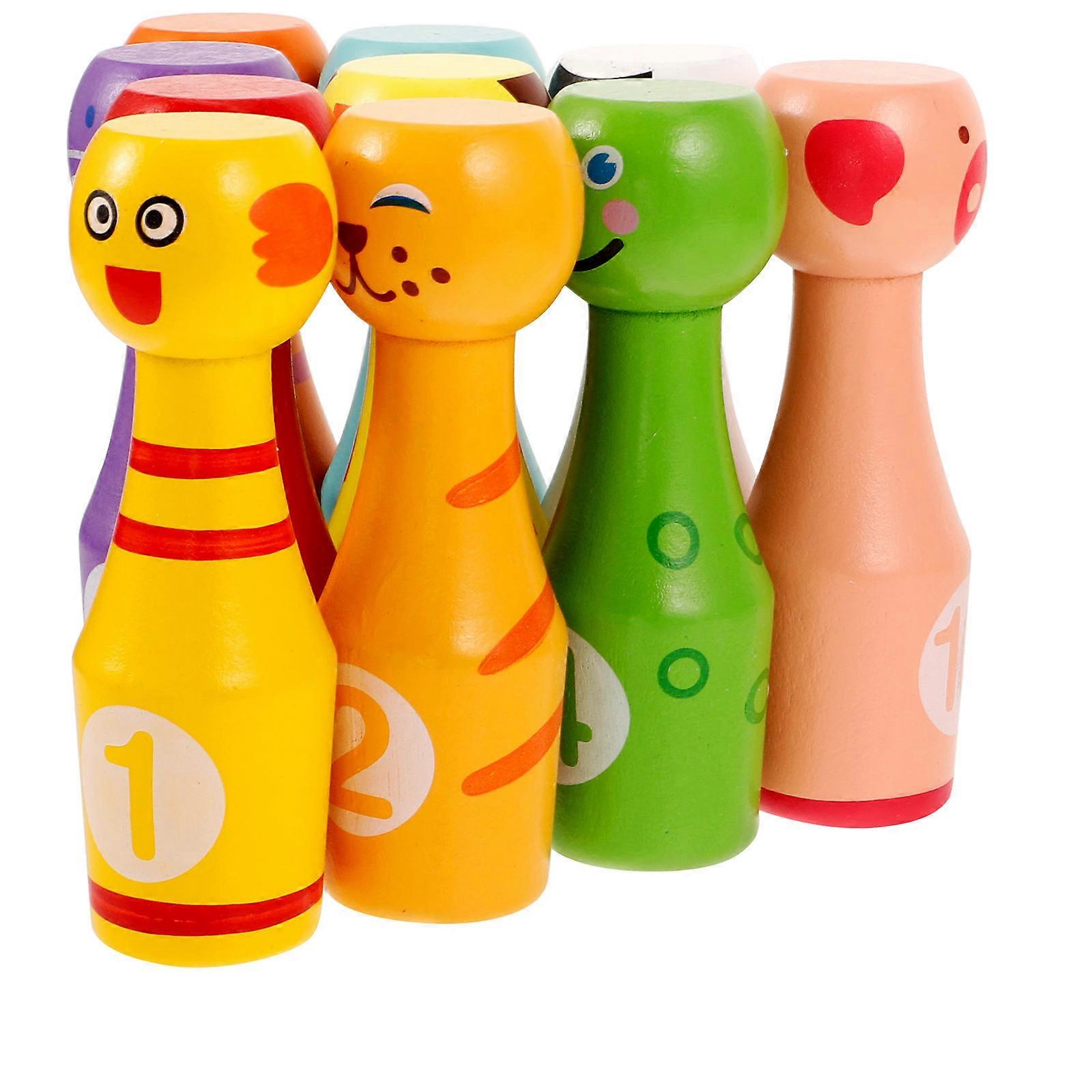 Wooden Bowling Ball Toy Set for Kids 1Set with Cartoon Animal Shapes