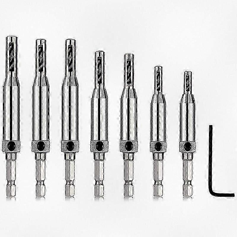 **Revised ** **Versatile Use:** This counter drill bit set comes in various sizes to suit your needs, ideal for woodworking projects or quick disconnect adapters like window or door fittings. **Precision Design:** Features an adjustable, spring-loaded outer guide for easy drill replacement and perfect pilot holes. Ensures accurate alignment every time. **Durable & Reliable:** Made of sturdy steel for clean, precise counter holes. A practical gift for DIY enthusiasts. **Color:** Silver **Material:** Steel **Sizes:** 5/64", 7/64", 9/64", 11/64", 5mm, 13/64", 1/4" **Includes:** 7x hinge hole openers **Usage Tip:** Operate at low speed (2000-3000 RPM) to avoid damage. **Note:** Slight color variations may occur due to lighting. Size tolerance: +/- 1-3cm. Package contents only, no additional items included.