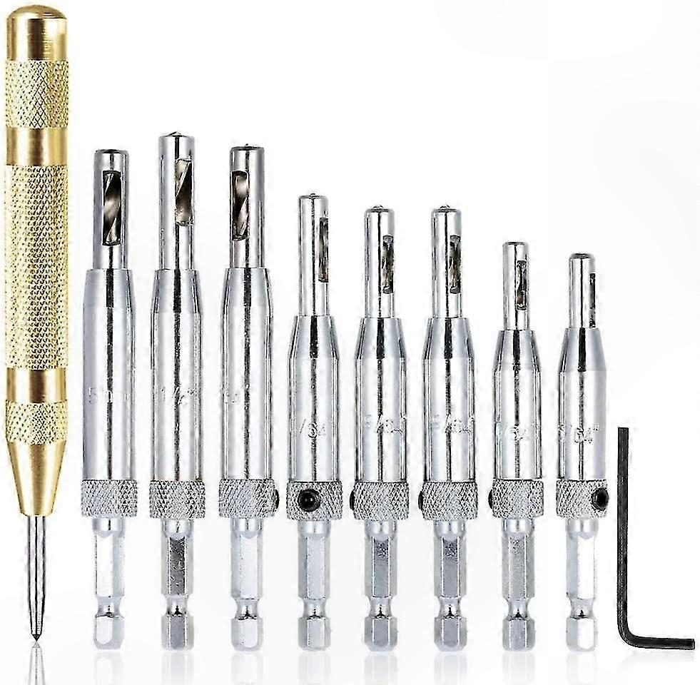Self-Centering Hinge Drill Bit Set with Auto Punch for 1/4" Furniture Door Woodworking