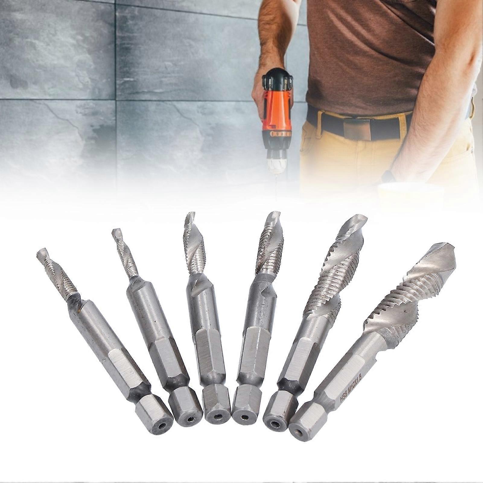 Drill Tap Bit Set Hex Shank Metric Combo HSS Ti Plated Screw Deburr Tool M3 M4 M5 M6 M8 M10 Item Type: Drill Tap Bit Set Material: High speed steel Tap Style: Spiral flute Hex Handle Specifications: Diameter: Approx. 6.35mm / 0.3in Thread Type: Coarse thread Specification: M3x0.5, M4x0.7, M5x0.8, M6x1, M8x1.25, M10x1.5 Purpose: Tools for hole machining Applicable Scenarios: Suitable for drilling and processing of low hardness materials such as wood, aluminum plate, plate, plastic, iron sheet, etc.