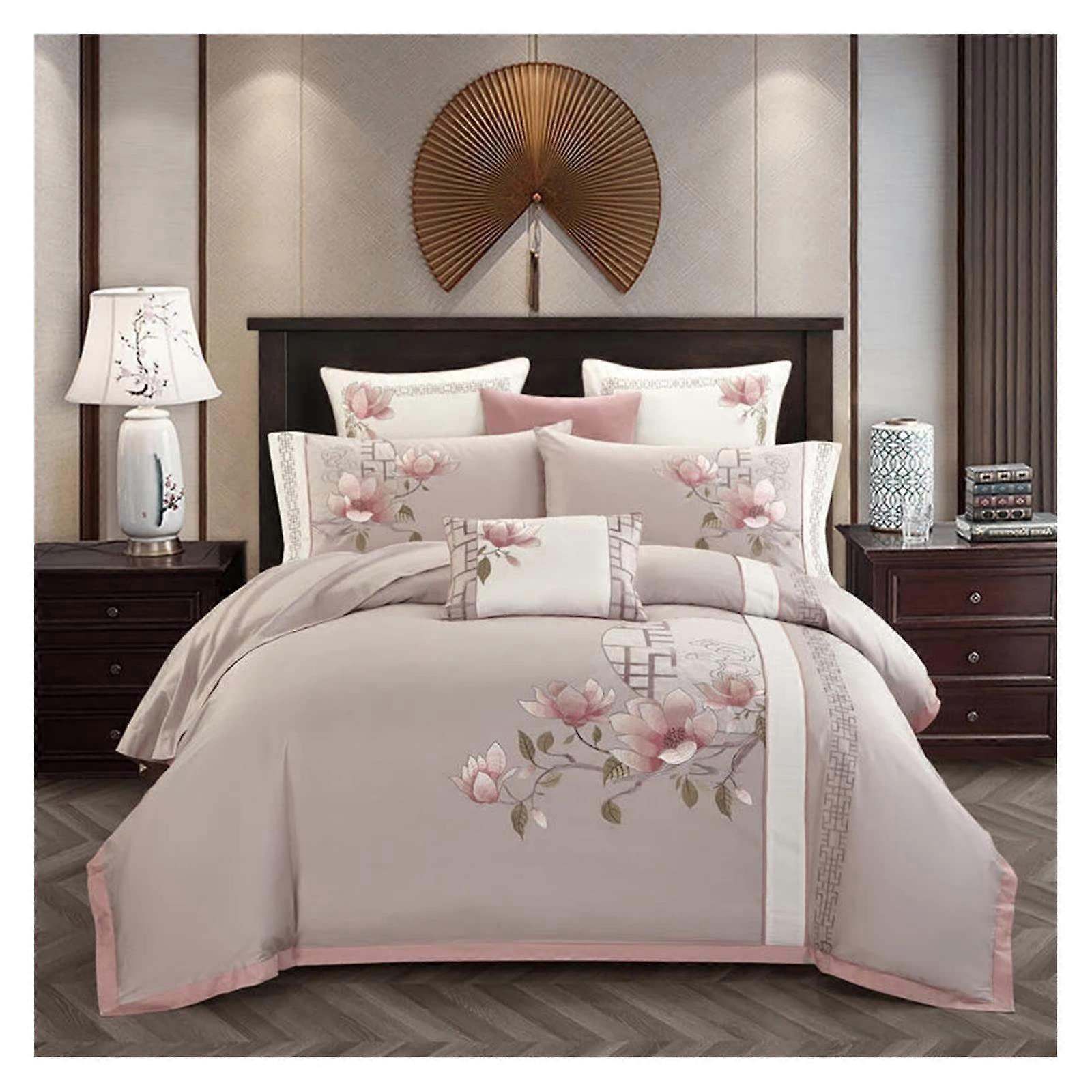 Bed Quilt Cover Cotton Classical Chic Embroidery Bedding Set, King/Queen Size, 4Piece, Color A