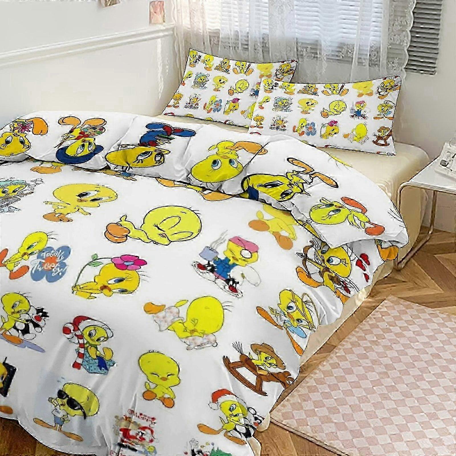 Ez334 TweetyBird Print Bedding Set Pattern Duvet Cove Set 3 Pieces 1 Quilt Cover And 2 Pillowcases for Women Men Teens Multiple sizes to cho