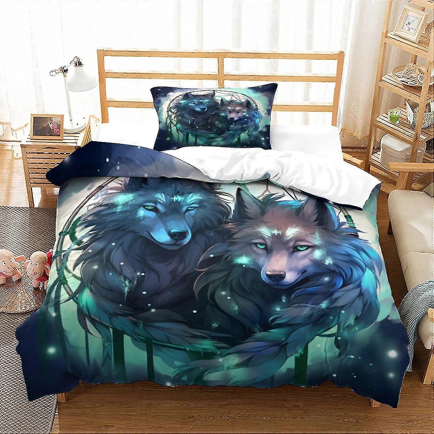 3D Print Bedding Set, Duvet Cover Set for Kids Boys, Wolf Room Decor for Young Teens Single