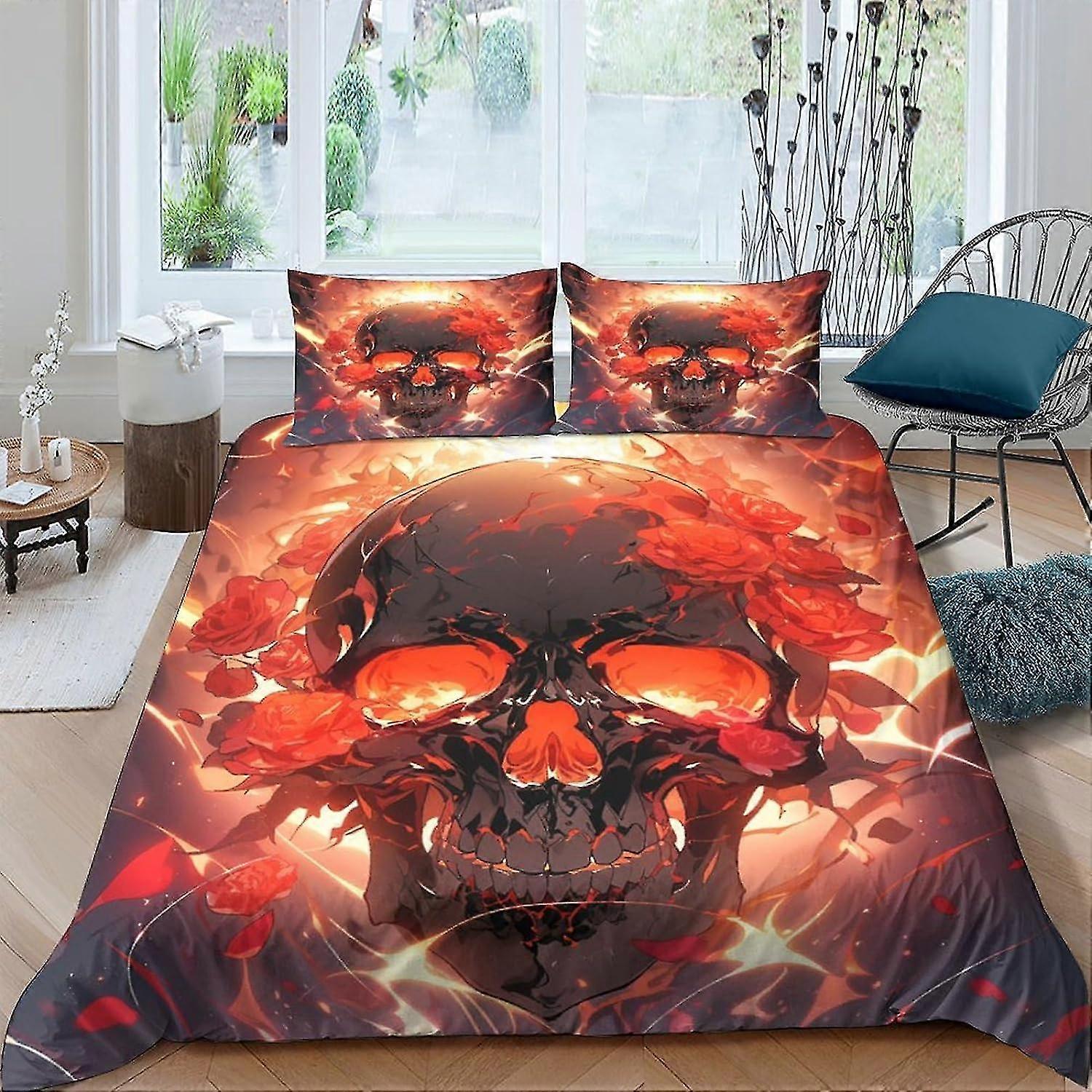 Gothic Skull 3D Digital Print Bedding Set with Pillowcase, Soft Microfiber 3 Pcs Quilt Cover with Zipper Closure, Double Size