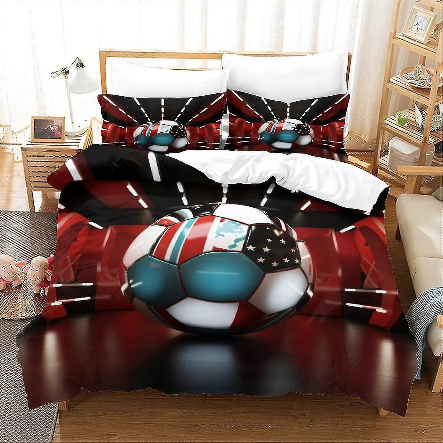 Kids Football Themed Bedding Set with Cherry Blossom Design for Girls - World Flag Printed Duvet Cover and 3D Bedspread