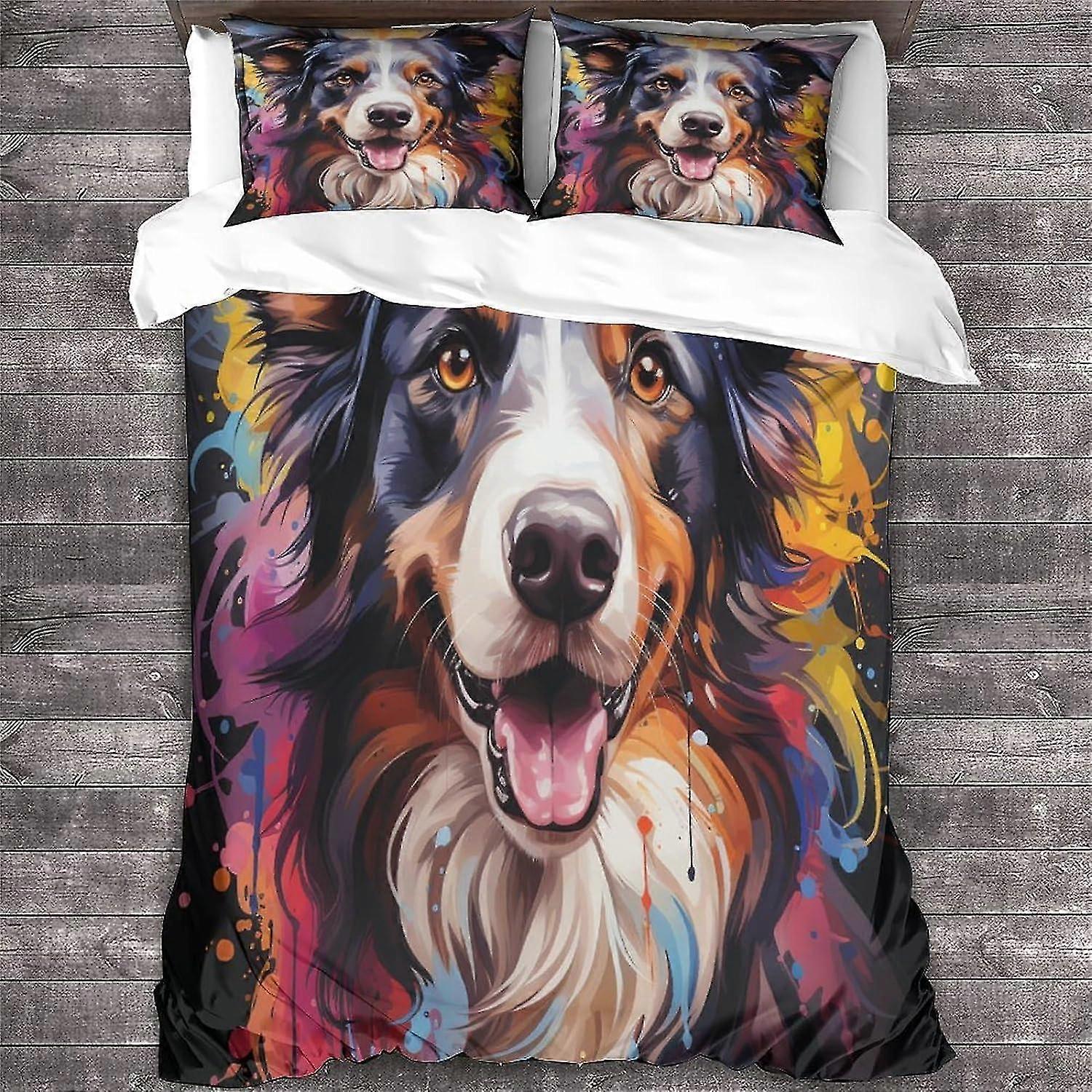 Animal Bedding Set for Border Collie with Dog Pattern Duvet Cover and Comforter for Double Room Decor