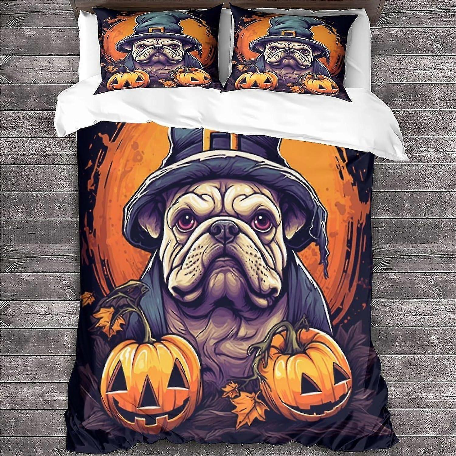 3D Animal Printed Dog Duvet Cover Bedding Set 3Pcs Microfiber Halloween Quilt Cover with Zipper Closure King Size