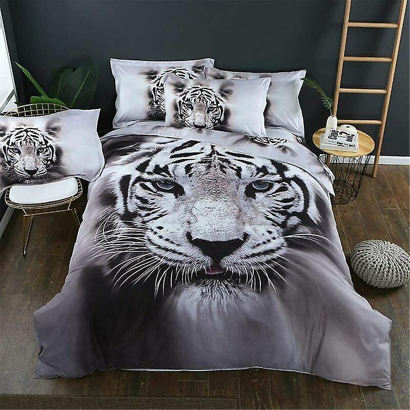 Duvet Cover Double Bed Set, 3 Piece Microfiber White Tiger Bedding Set with 1 Duvet Cover 2 Pillowcases (200x200cm),