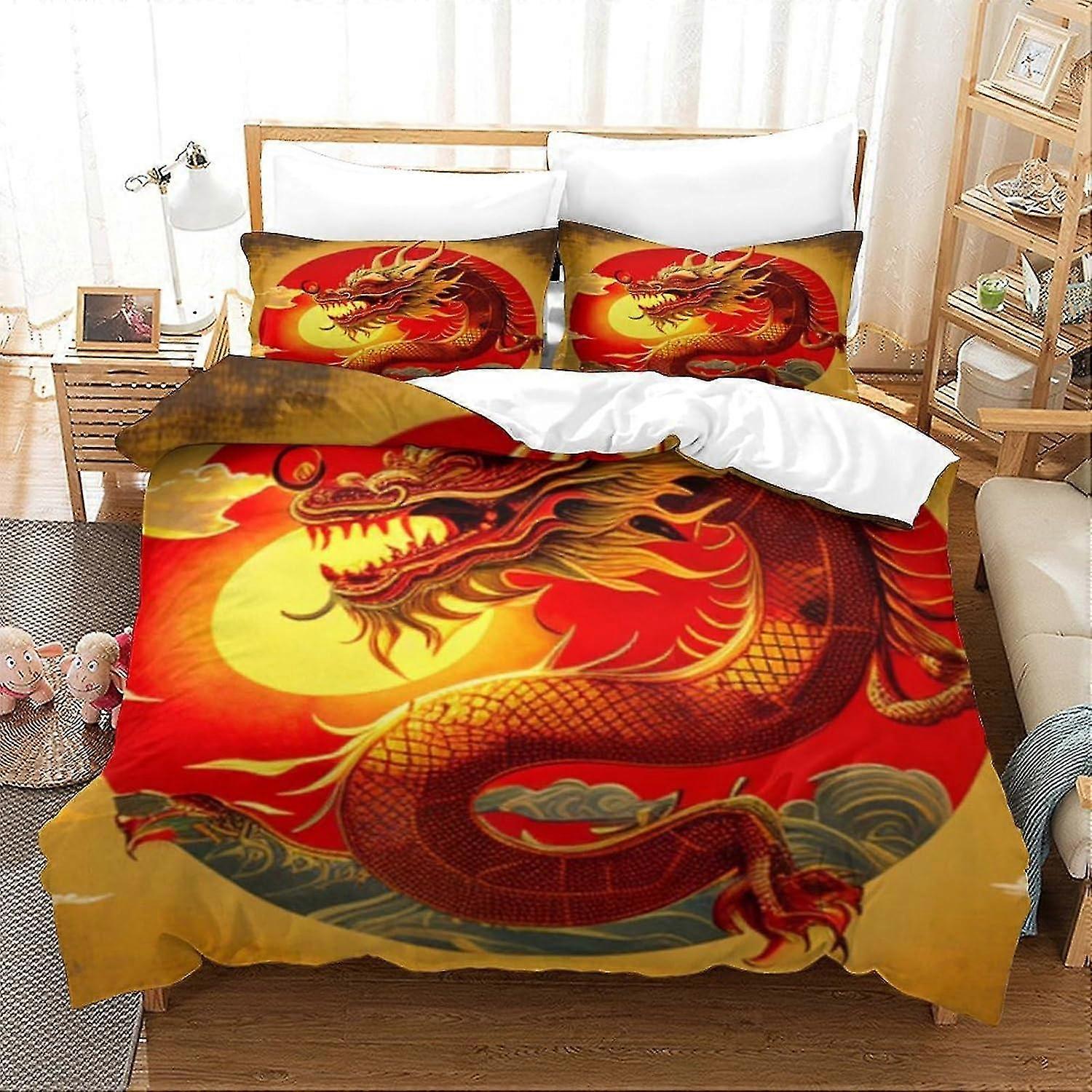 3D Print Dragon Bedding Set, Duvet Cover Set for Kids, Wyvern Room Decor for Boys Double
