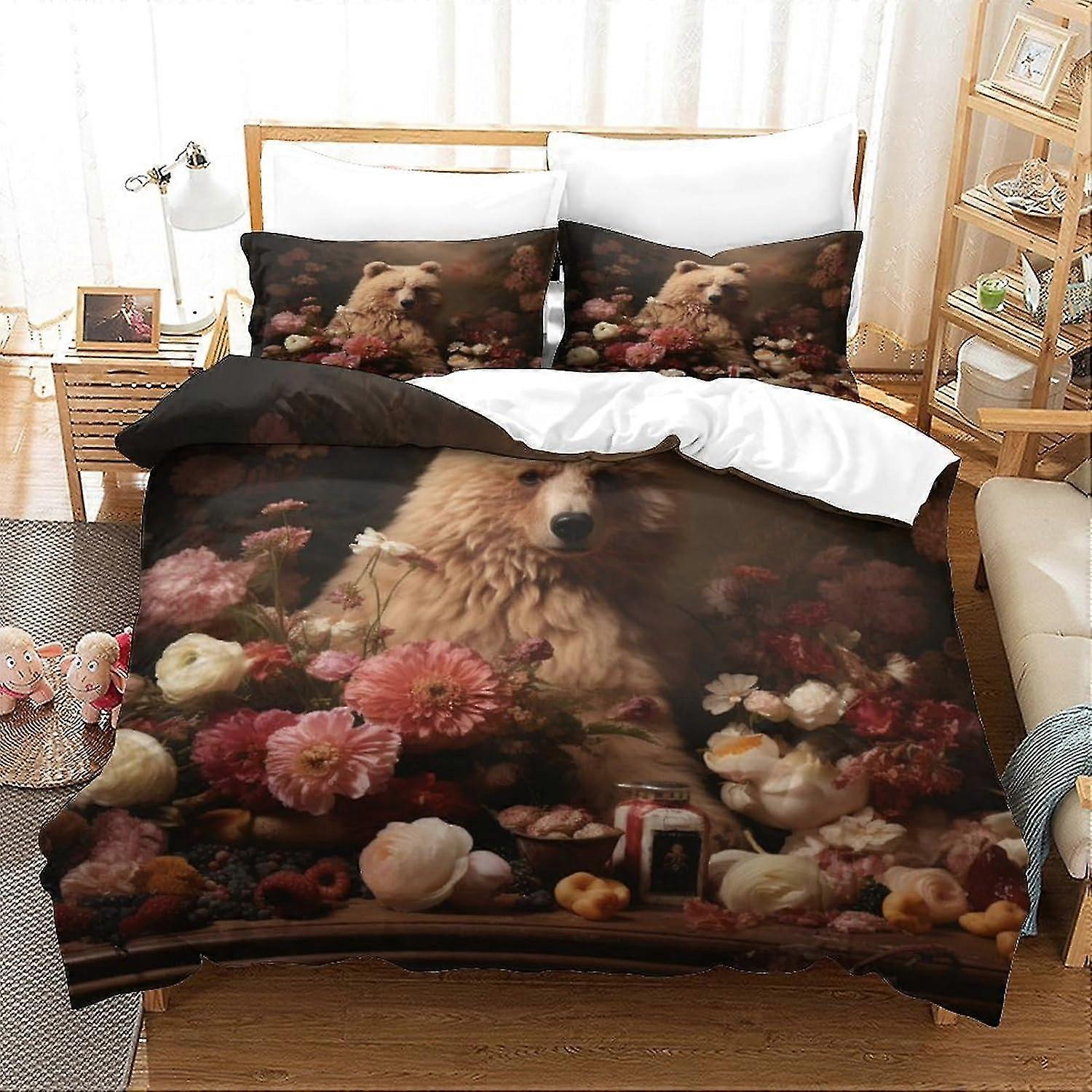 Flower And Panda Bedding Set 3D Anime Duvet Cover Set, Soft 100% Microfiber Bed Set 3PCS, Print Single Double King Size Microfiber Duvet Cov
