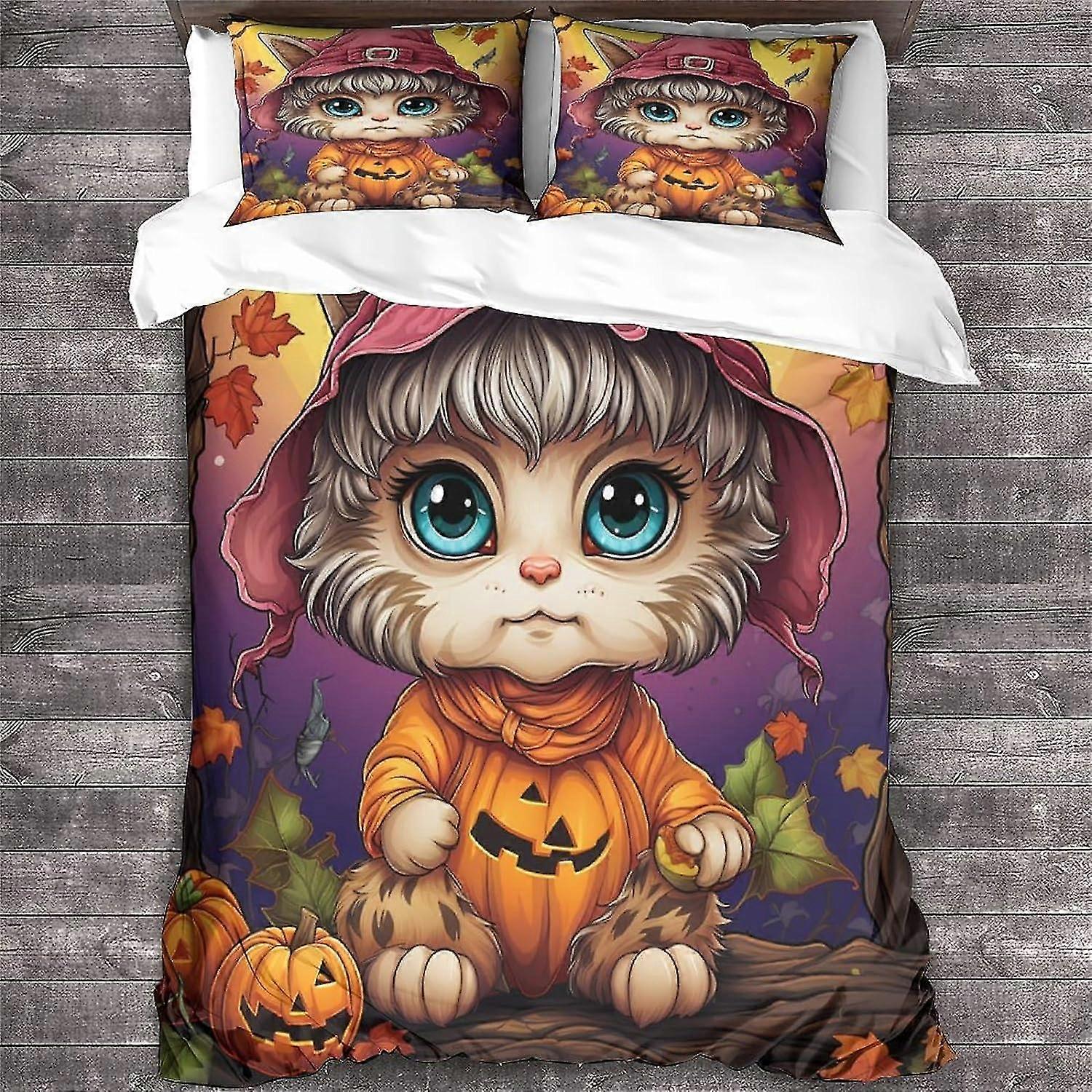 Animal Pattern Halloween Bedding Set with Zipper Closure Soft Microfiber Quilt Cover Suitable for Cat