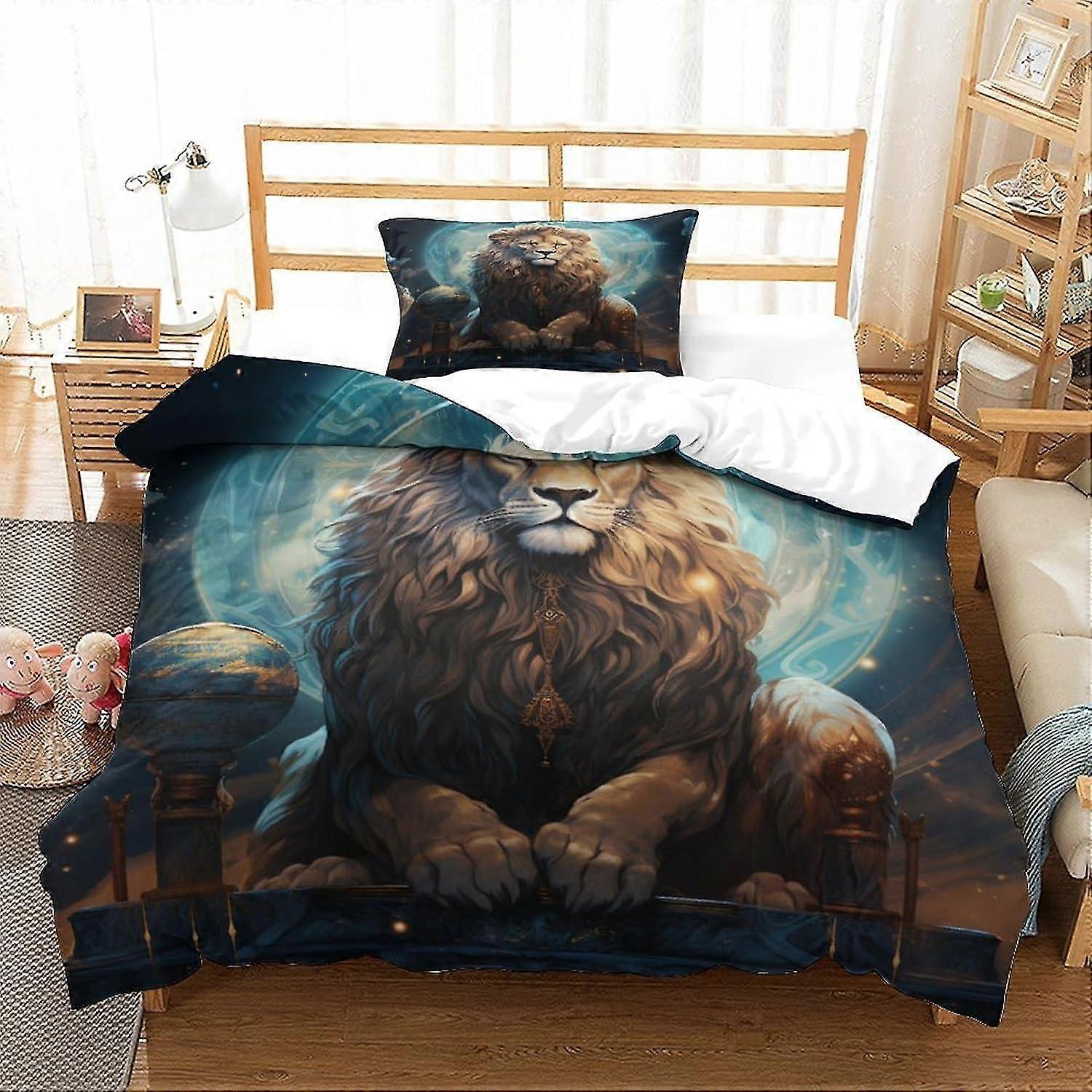 Starry Sky Lion Bedding Set 3D Tarot Style Duvet Cover Set, Soft Microfiber Bed Set 2Pcs, Print Single Double King Size Duvet Cover