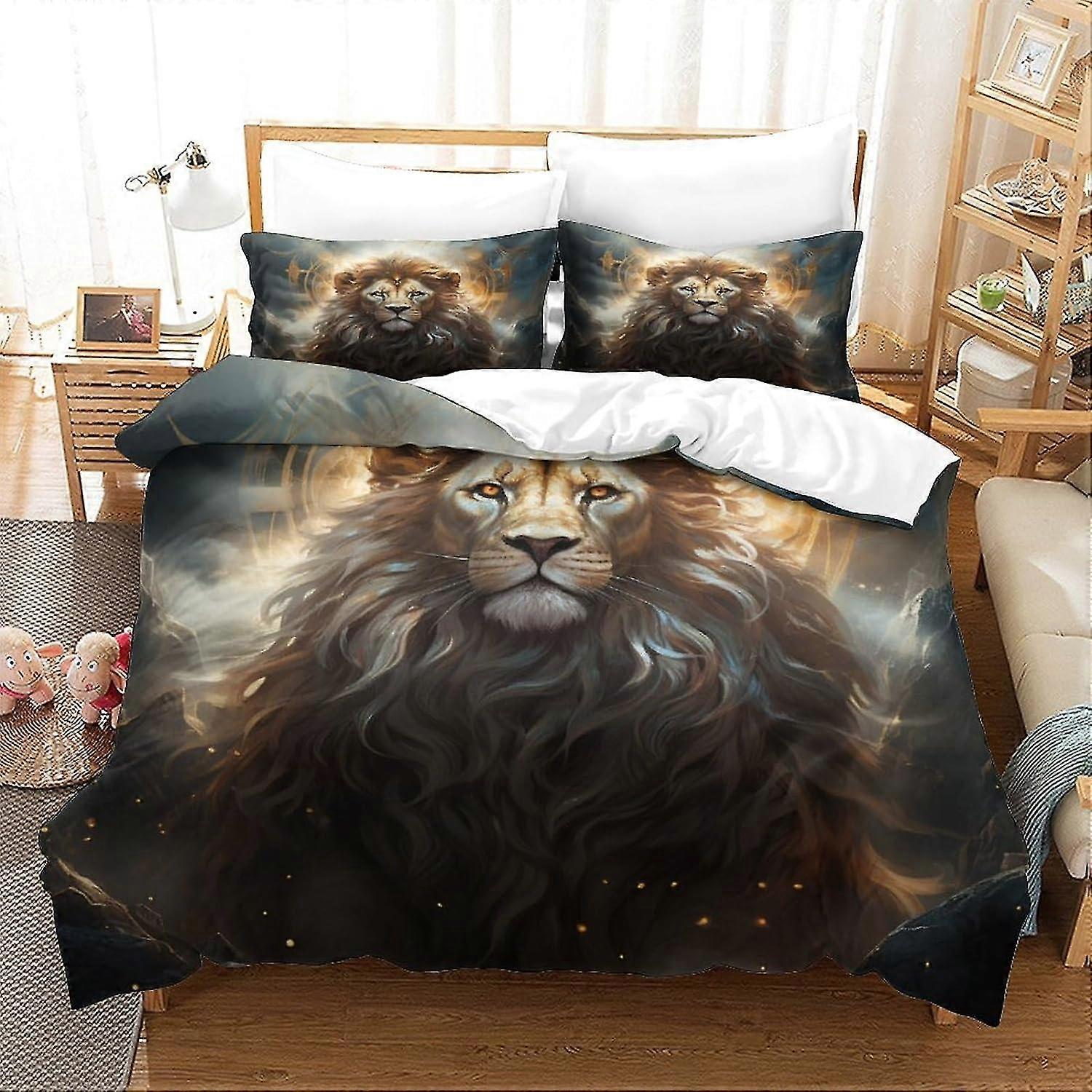 3 Pieces Starry Sky Lion Bedding Set with Pillowcases, Tarot Style Duvet Cover, Soft Microfiber Quilt Cover, Double Size King