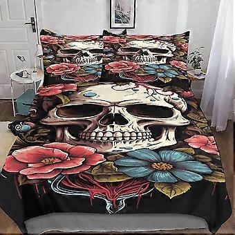Conjunto de Cama de Microfibra com Capa de Edredom de Caveira Gótica, Impressão 3D Capa de Colcha e Fronha de Caveira Criativa, Com Fecho de Zíper, Macio para Homens e Mulheres