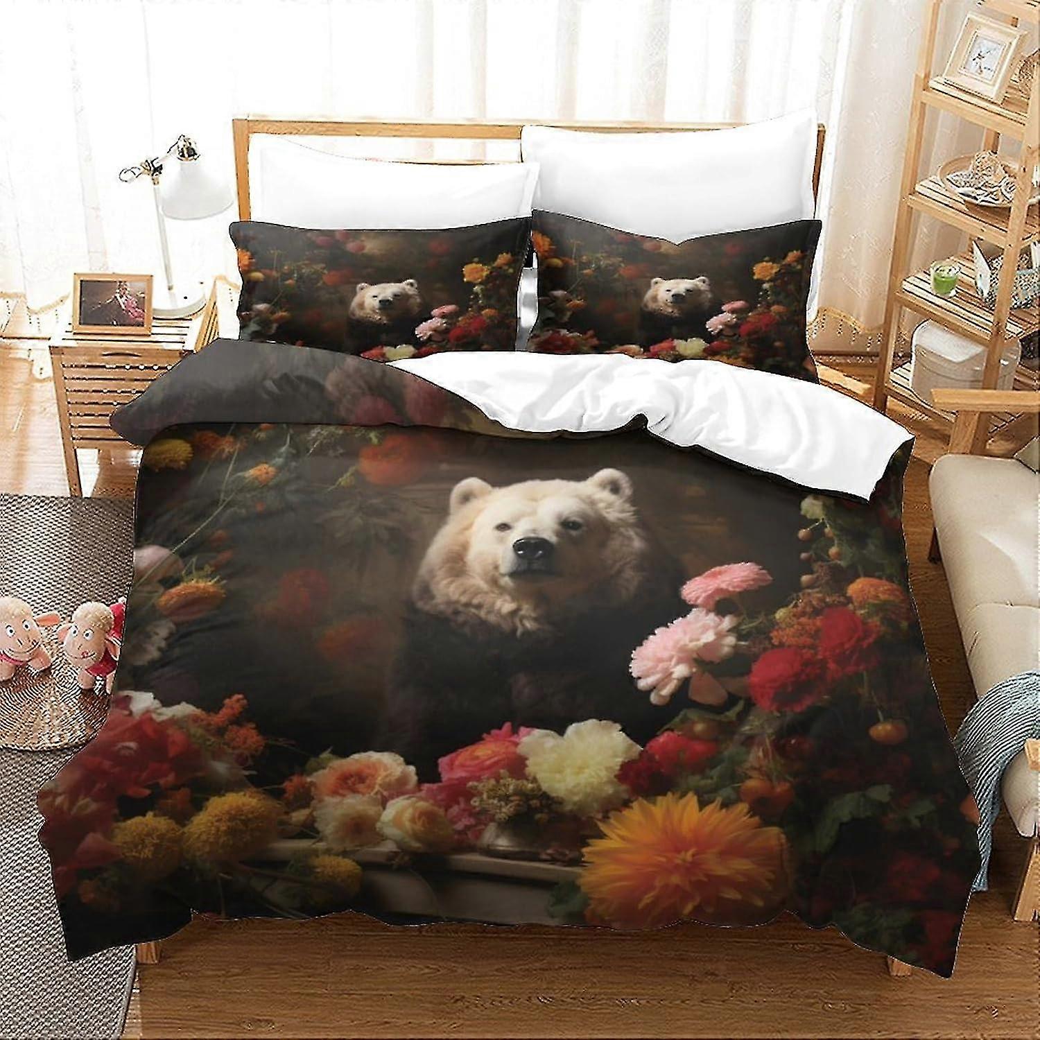 Floral and Panda Duvet Cover Soft Microfiber Bedding Set, 3D Print Anime Duvet Quilt Cover & Pillowcase with Zipper Closure, Suitable for Al