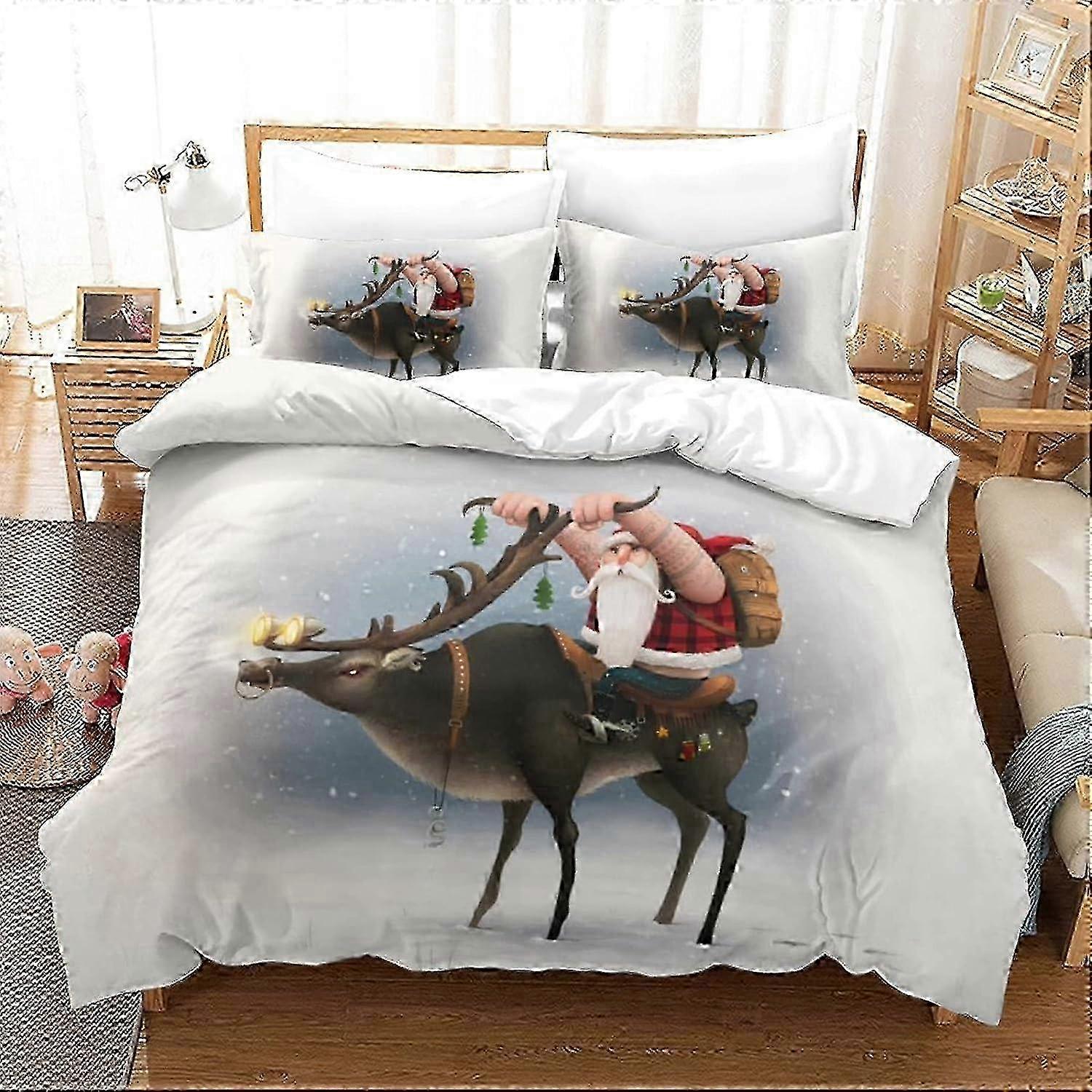 Christmas Bedding Set D Merry Christmas Holiday Duvet Cover Set Hypoallergenic Soft Comforter Quilt Cover with Pillowcases King 135*200 CM 2