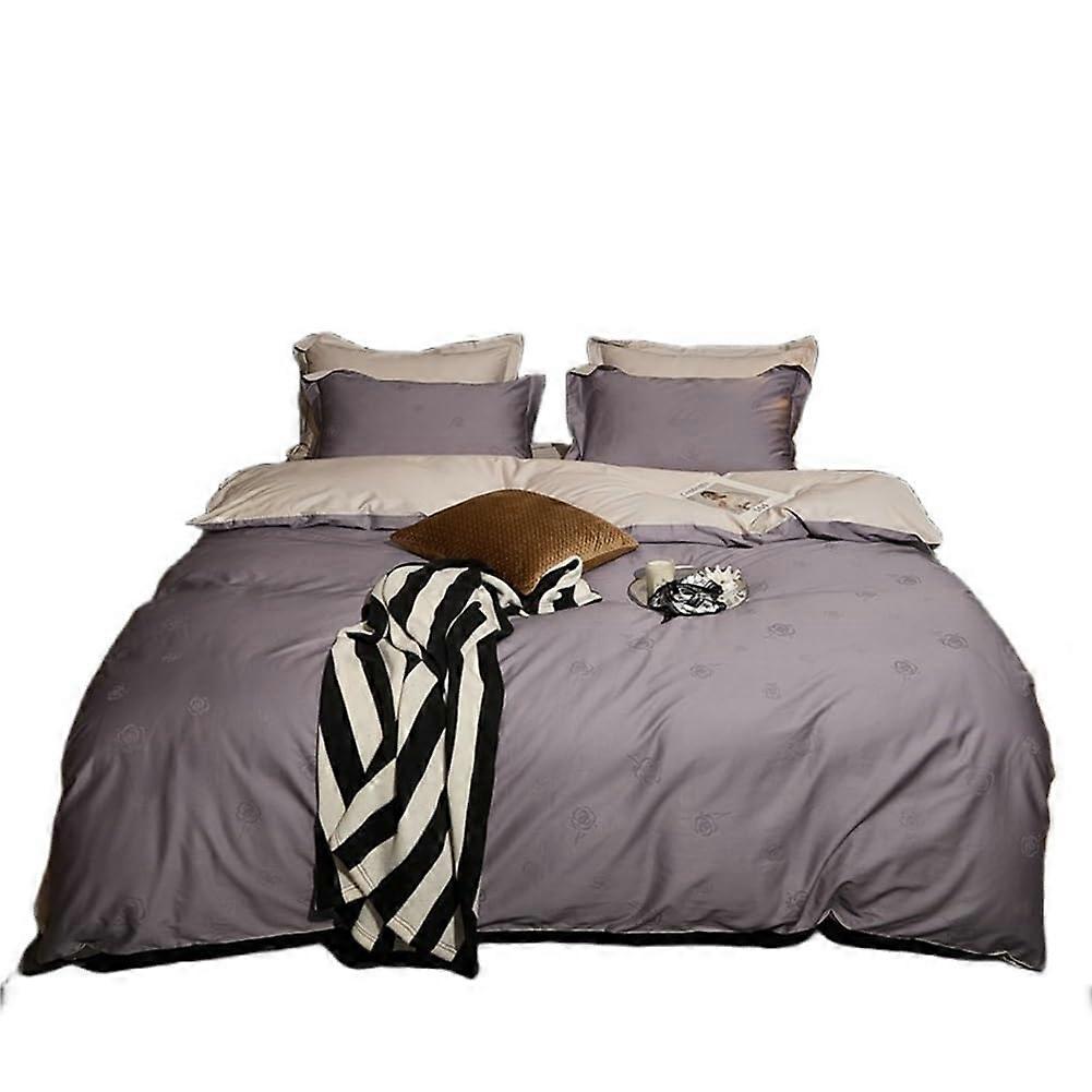 Four Piece Bedding Set Queen Size Cotton Duvet Cover Fitted Sheet Pillow Shams Comforter Cover Purple Zipper Closure