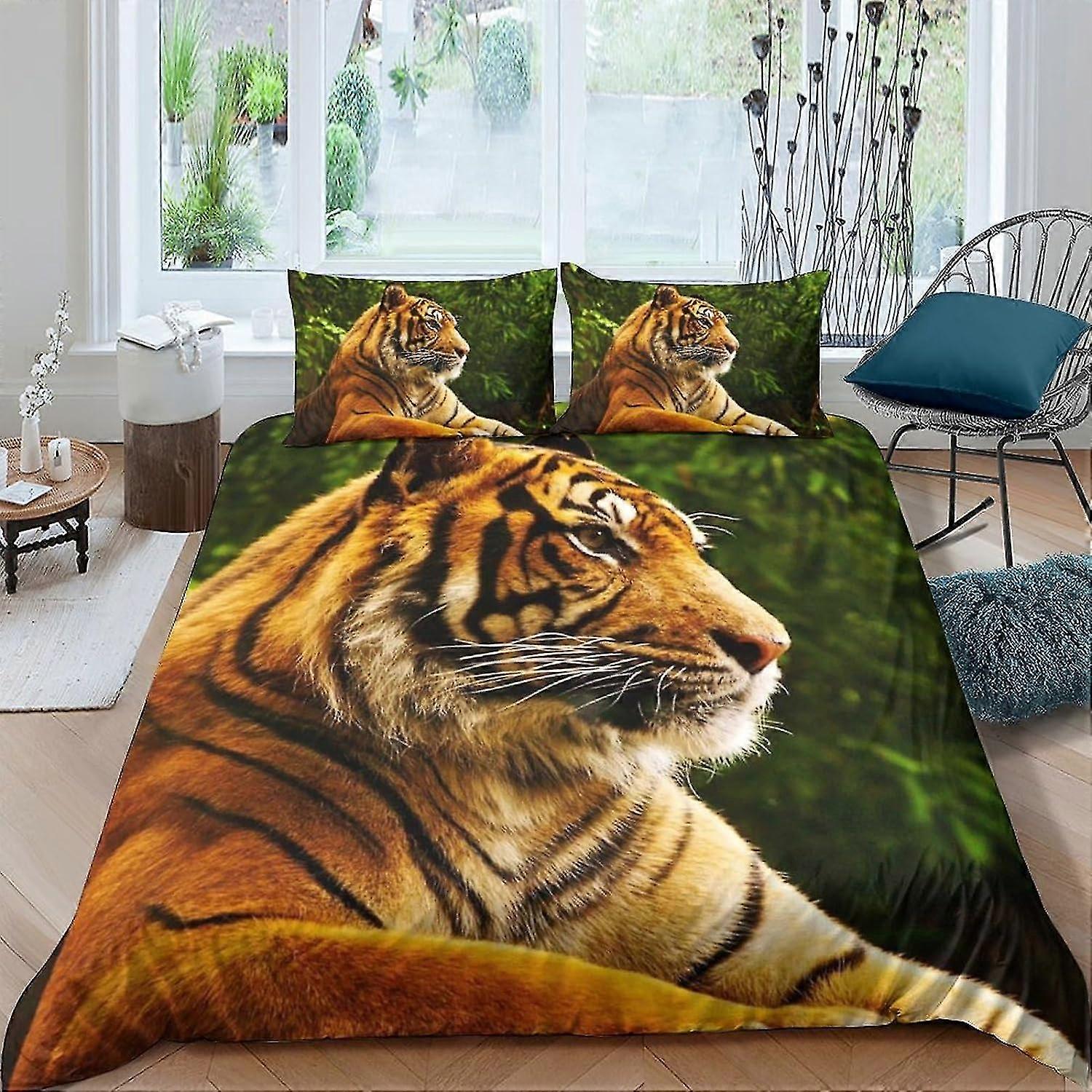 3D Printed Tiger Bedding Set with Pillowcases and Zipper Closure, Hypoallergenic Soft Microfiber Quilt Cover Set King