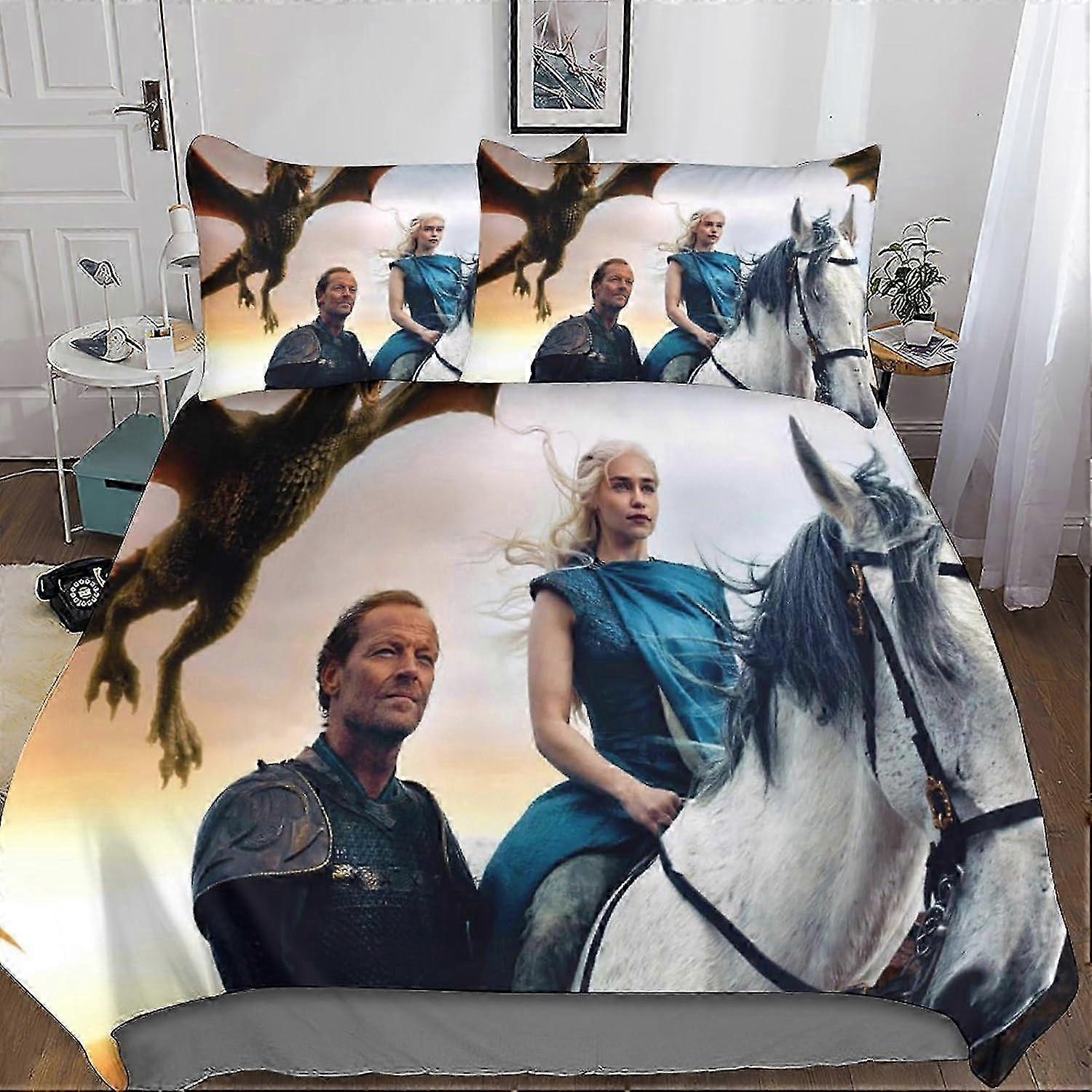 2025 Emilia Clarke Bedding Set with Duvet Cover 3D Dragon Duvet Cover and Pillowcases Microfiber with Zipper Closure 3 Pcs for Single or Double Bed