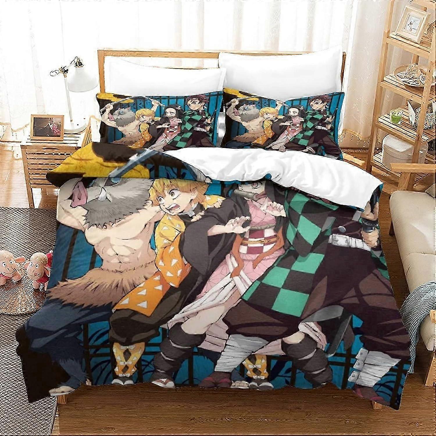 Ghost Slayer Bedding Set for Boys, Cartoon Pattern Duvet Cover, Boy Girl Duvet Cover, Quilt Cover with Pillowcase, King 135*200 cm Cs