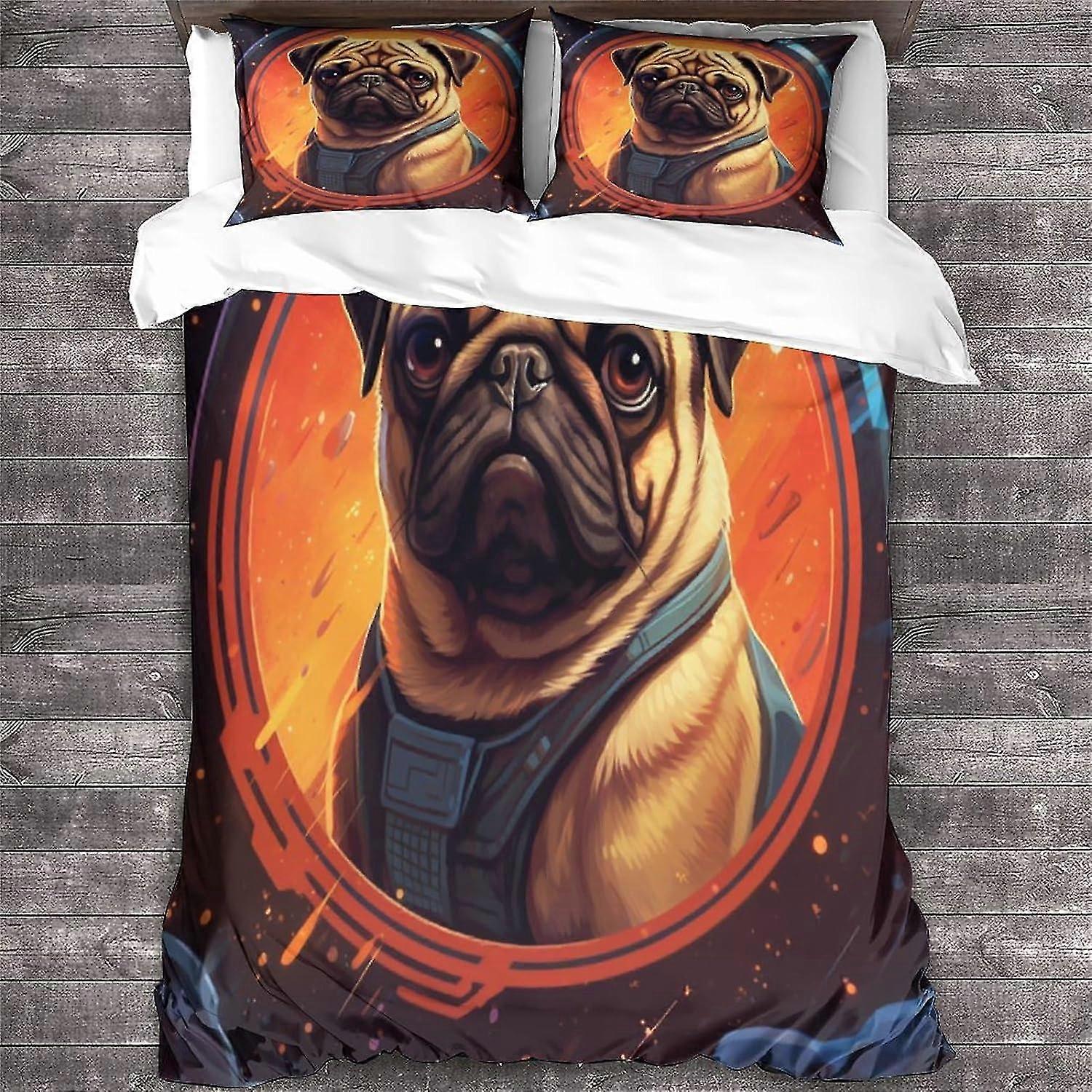 Animal Printed Bedding Set Soft Microfiber Dog Quilt Cover with Zipper Closure King Size