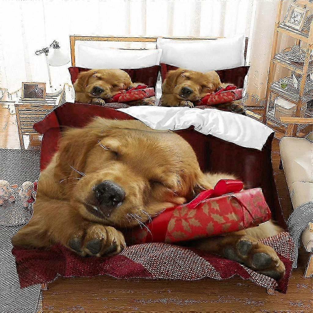 Golden Retriever Design Kids Bedding Set - Single Duvet Cover 135x200cm with 2 Pillowcases 50x75cm