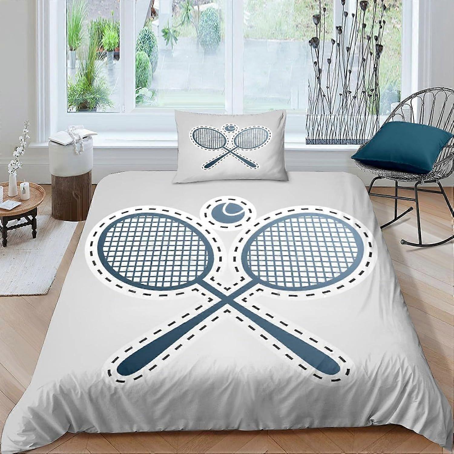 k109 Tennis Racket Sports Enthusiasts Bedding Set for Kids,2Pcs Duvet Cover with Zipper Closure,Ultra Soft & Breathable,3D Duvet Cover Set for Boys Gi