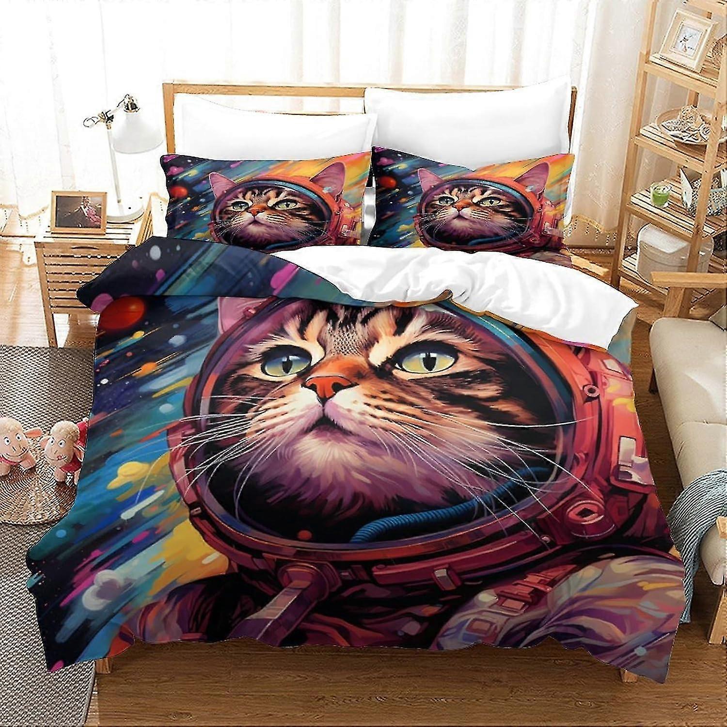 Kids Space Cat Bedding Set Stylish Cherry Blossom Duvet Cover Set for Girls Kitten Printed Comforter Cover 3D Bedspread Cover 3Pcs
