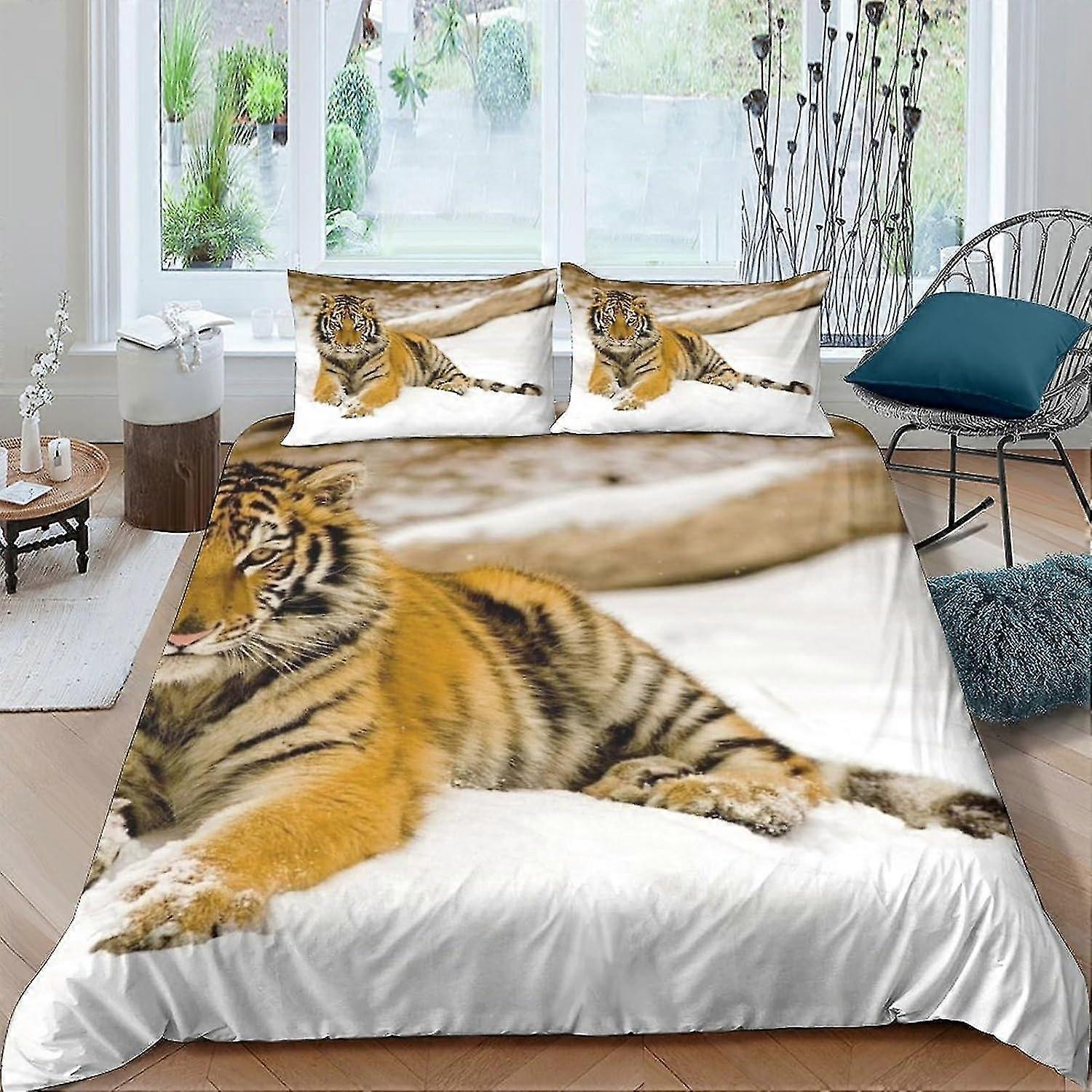 Tiger Bedding Set Duvet Cover Soft Microfiber Quilt Cover with 3D Print Design for Kids Teenagers Adult 3 Piece Set with Zipper Closure King