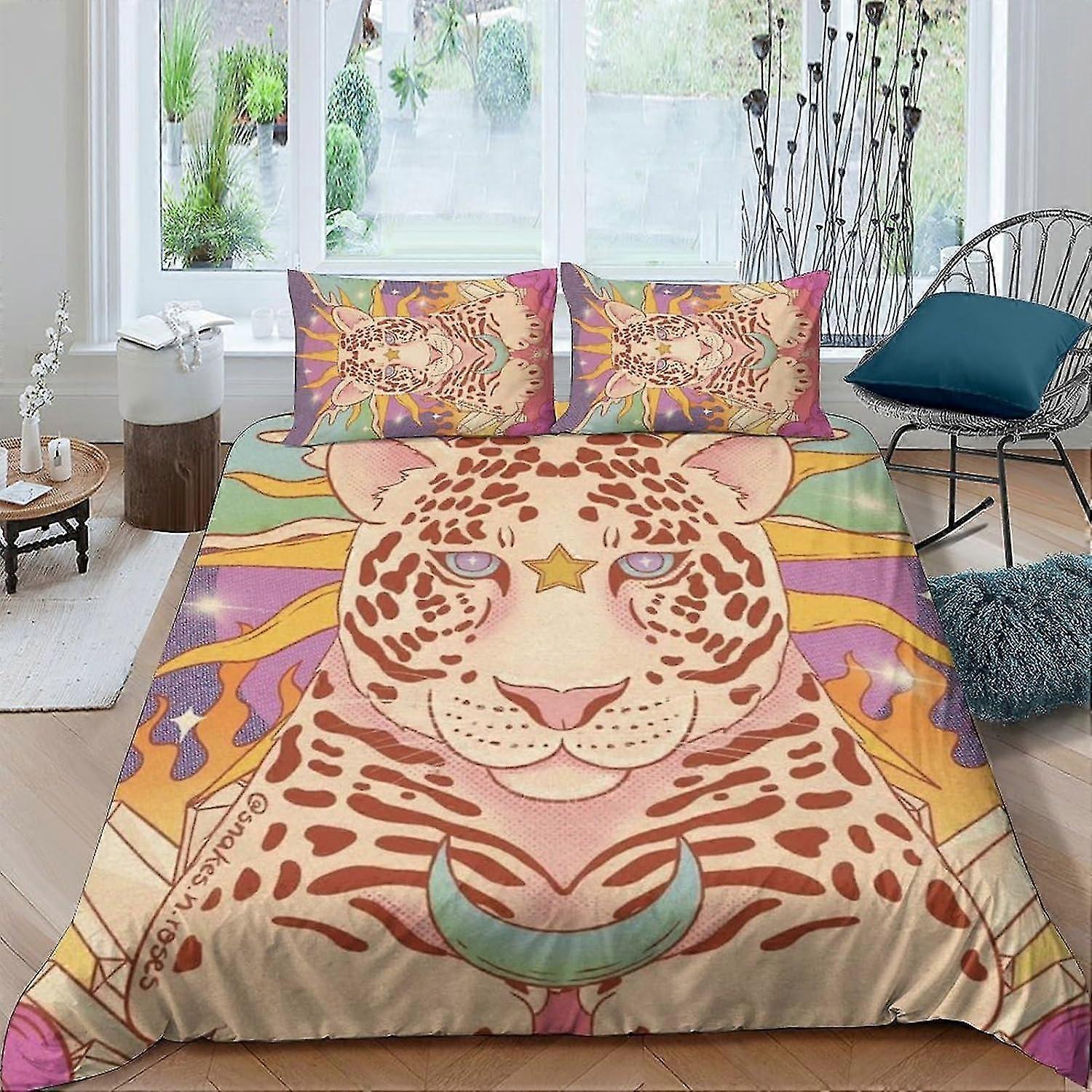 Leopard 3D Animal Effect Duvet Cover Set for Children and Adults with Pillow Cases, Microfiber Quilt Bedding Set King