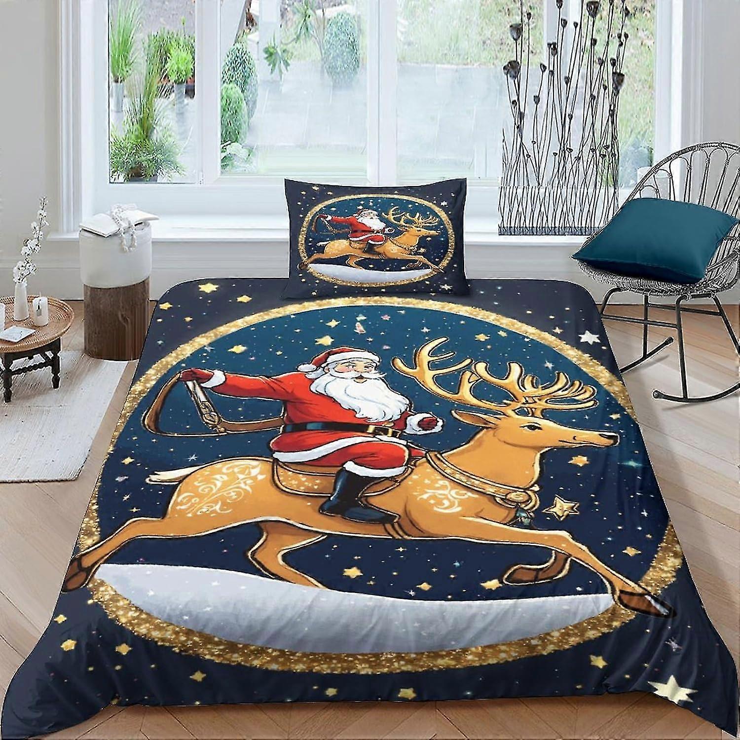 3D Cartoon Print Duvet Cover Set for Santa Claus with Hidden Zipper Closure, Microfiber Polyester Comforter Quilt Cover