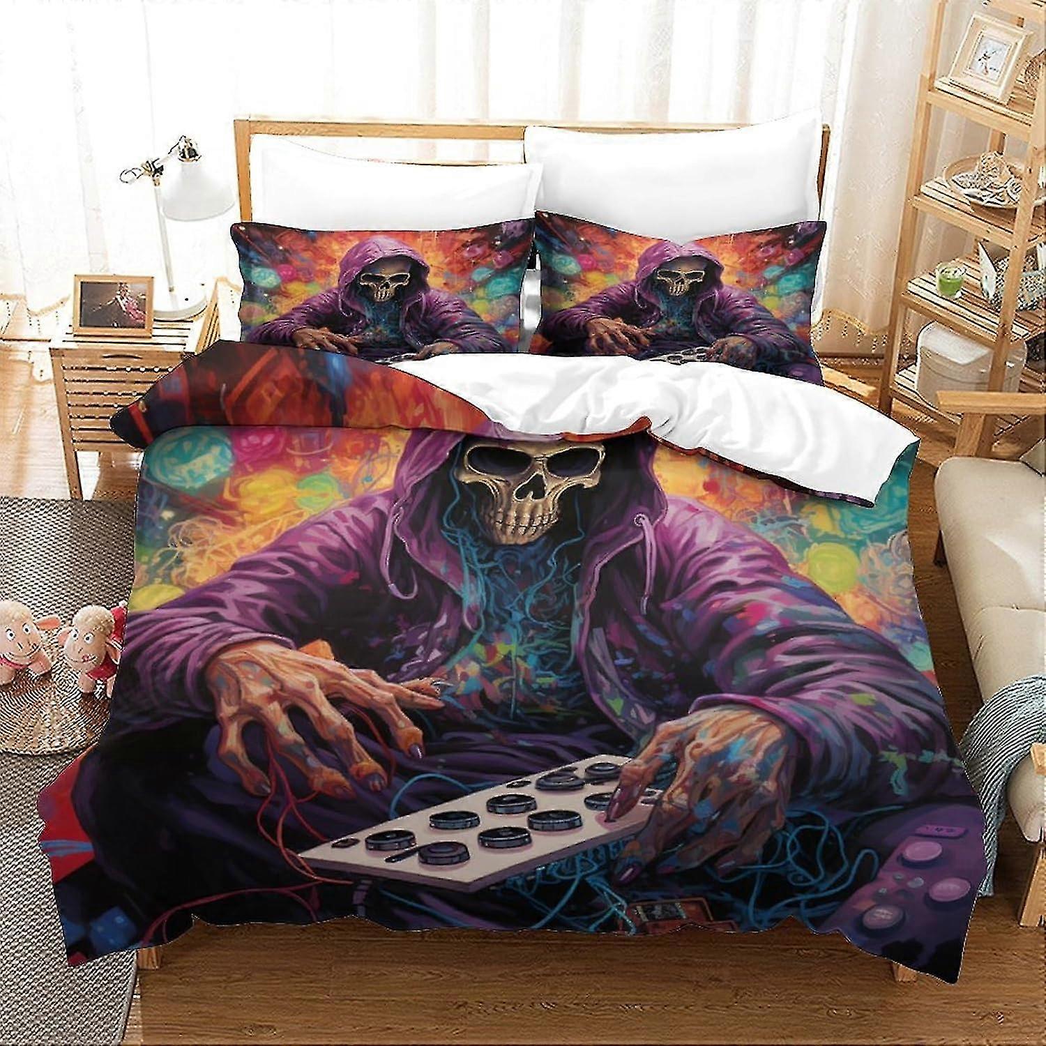 Bedding Duvet Cover Set 3D Print Human Skeleton Quilt Cover, Street Style Print Microfibre Duvet Cover Set in Various Sizes