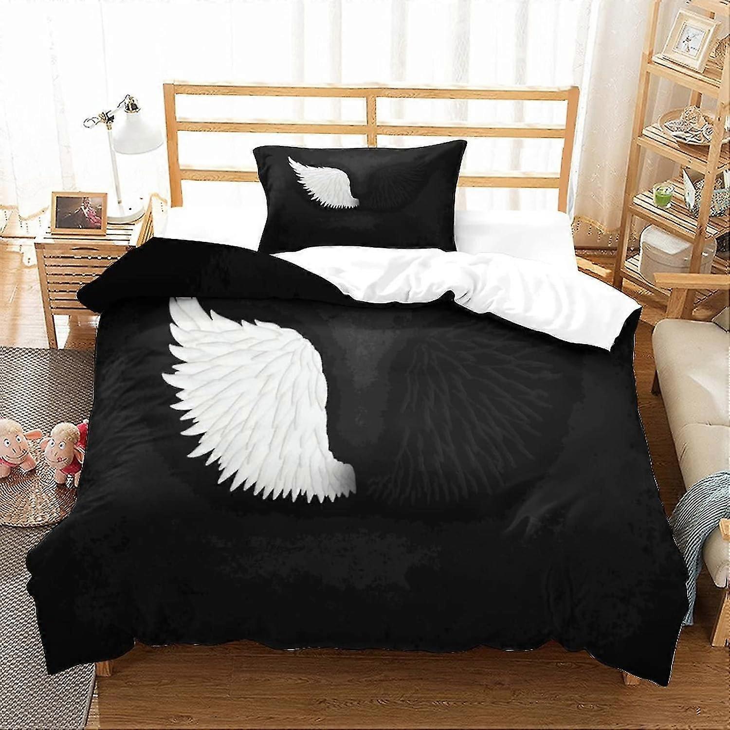 Bedding Duvet Cover Set 3D Print Fallen Black Angel Quilt Cover, Wings Print Microfibre Duvet Cover Set with Pillow