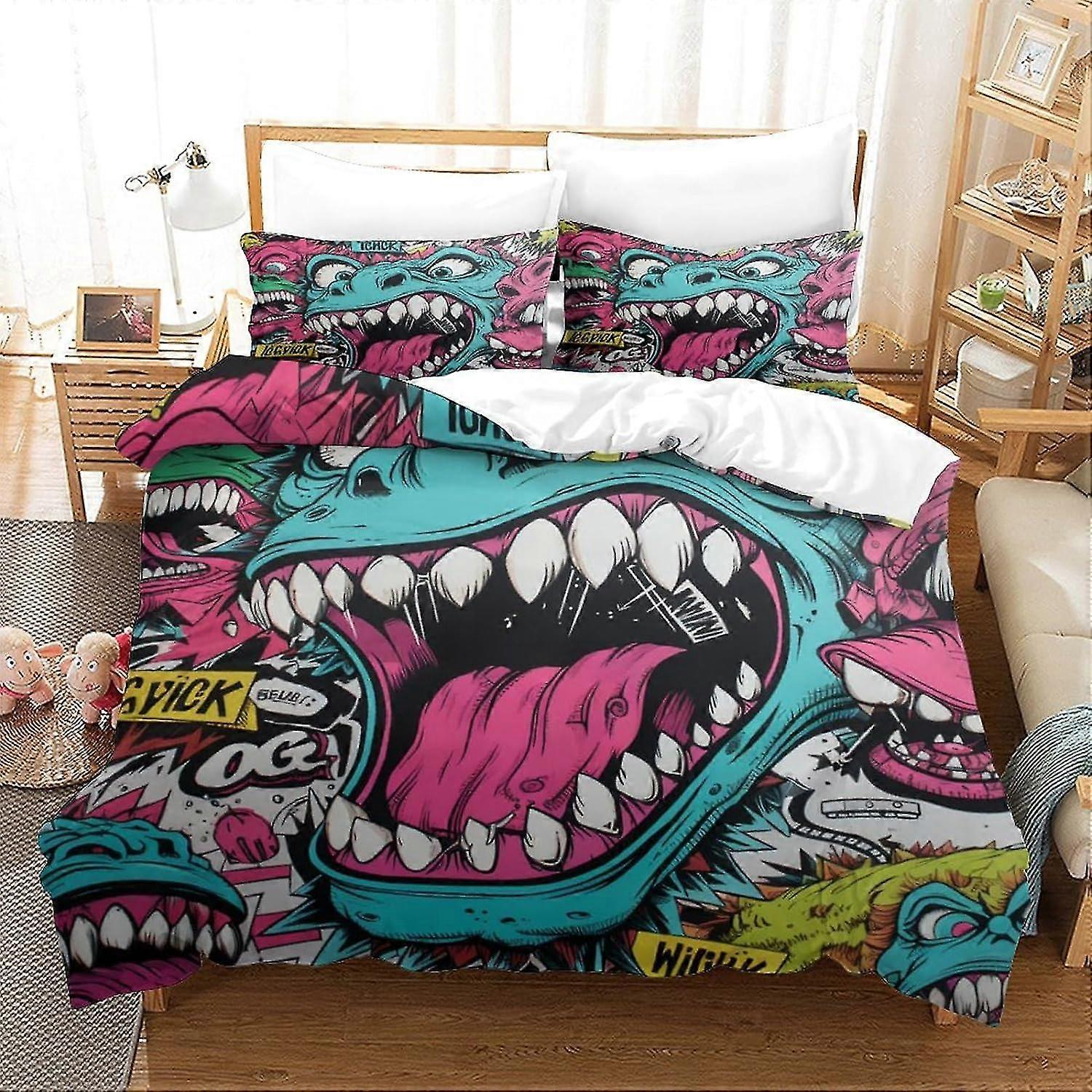 Manga Character Bedding Duvet Cover Set Soft Microfiber Abstract Design with Zipper Closure and Pillow Shams for Kids and Adults