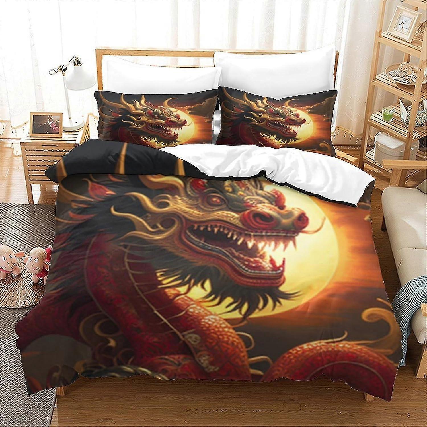 3D Chinese Dragon Duvet Cover Set for Suitable Brand, Lightweight Quilt Cover with Zipper Closure for Kids, Teens, Adults (3PCs King)