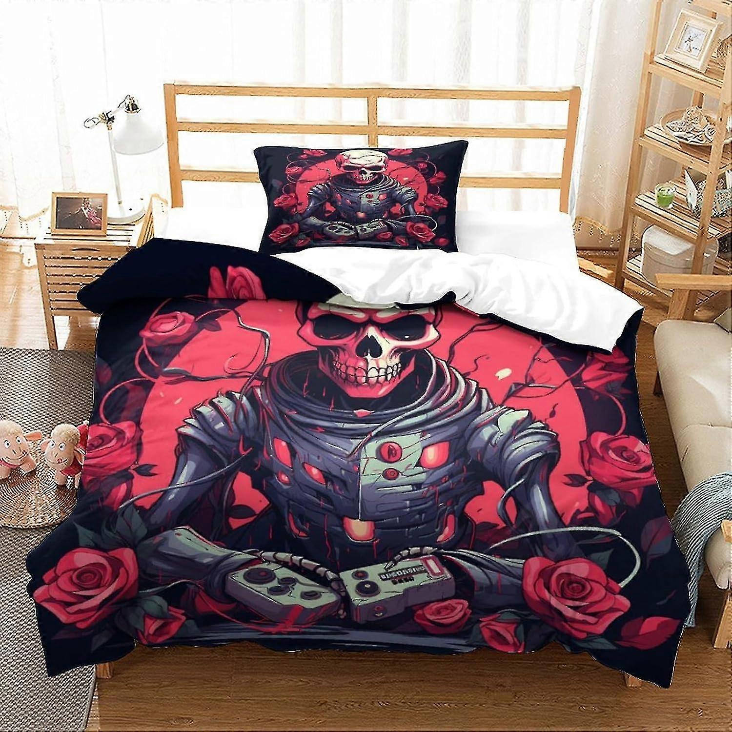 Microfibre Duvet Cover Set with 3D Print Human Skeleton and Game Controller Design, Available in Single, Double, and King Size