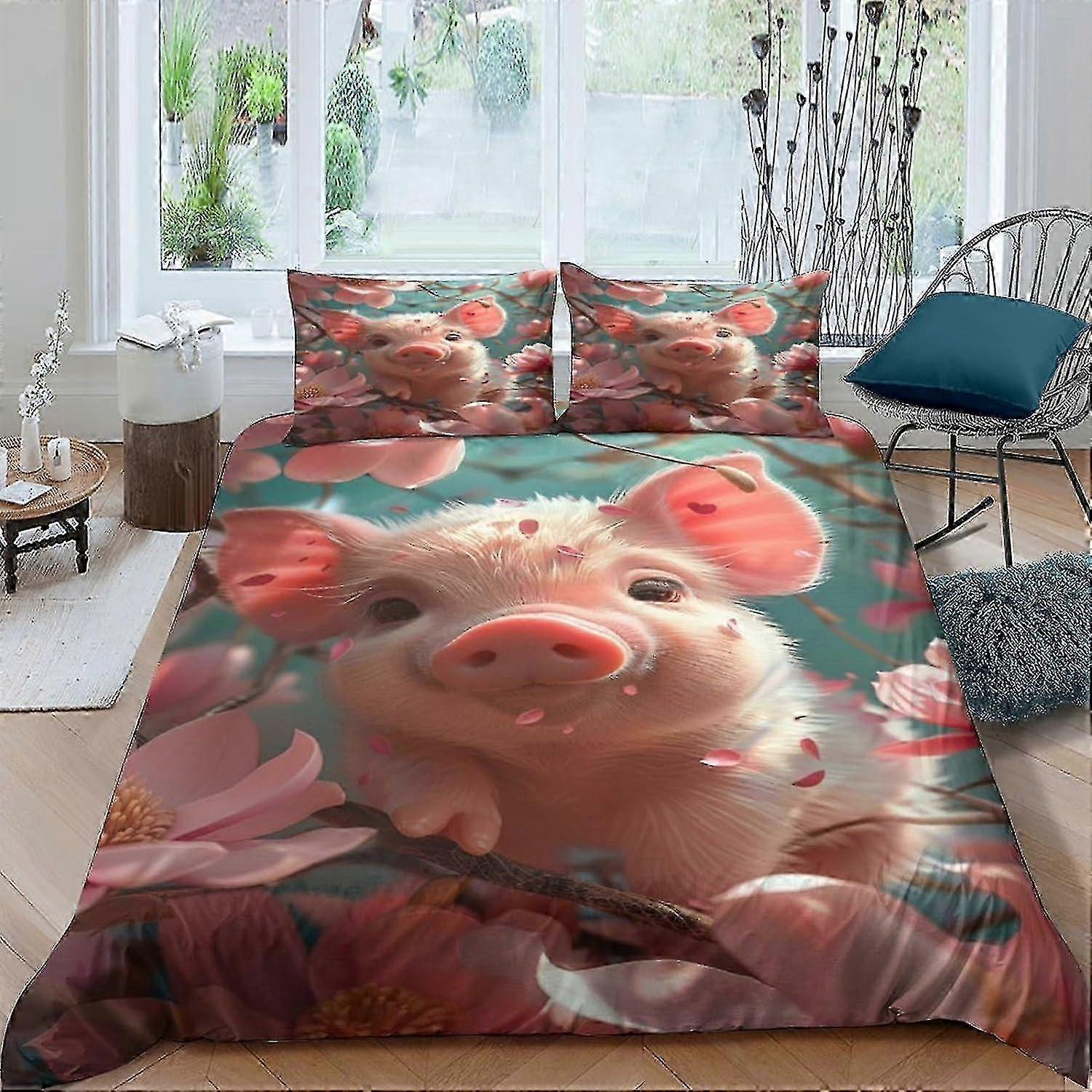 EKENOZ Piggy 3D Comforter Cover Set for Kids Boys Duvet Cover 3 Piece Set Youth Teens Bedding Set Quilt Cover with Zipper Closure Soft Microfiber