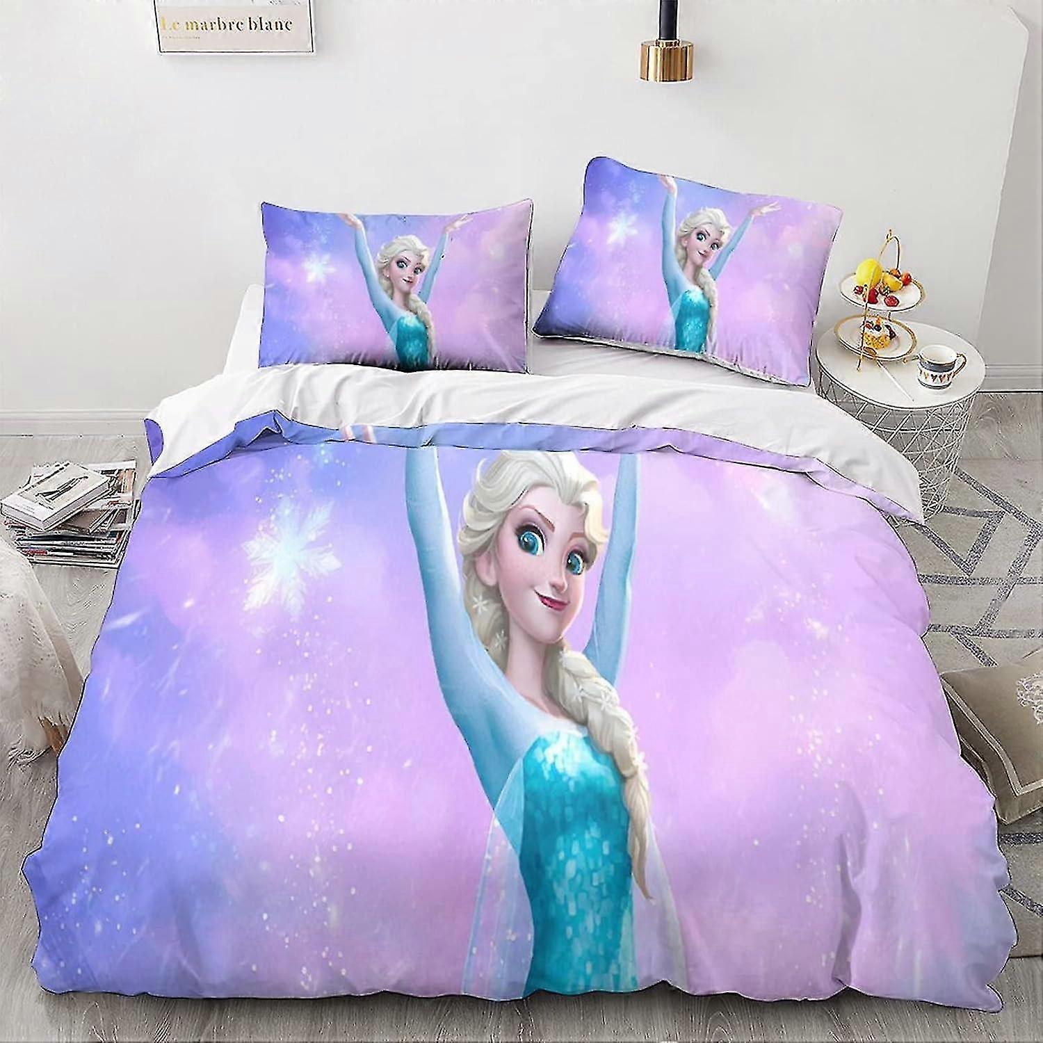 Frozen 3D Duvet Cover 3-Piece Set Print Bedding Anime Characters Quilt Set with Hidden Zipper Pillowcases Soft Microfiber Easy Care Quilt Co