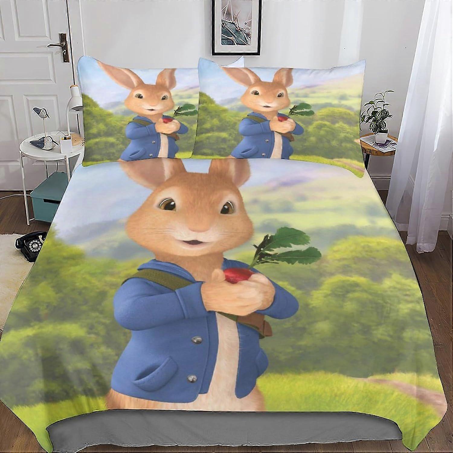 A17 Peter Rabbit Duvet Cover Set 3D Printed,Soft Microfiber Movie Characters Quilt Cover 3 Pieces with Zipper Closure Bedding Set And Pillwocase Suita