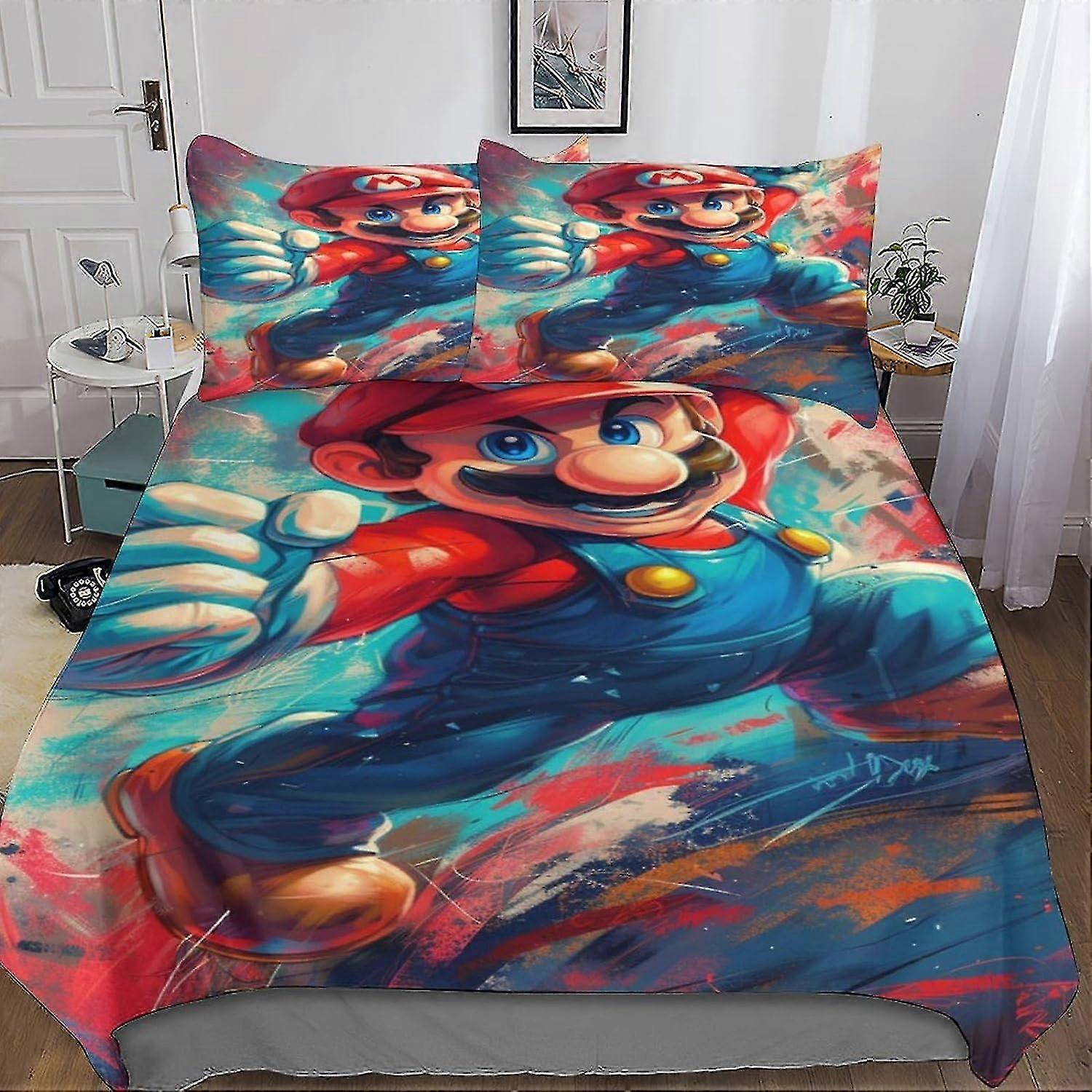 Cozy Comforter Cover Set with Hidden Zipper Closure - Microfiber Cartoon Bedding Set with 3D Print and Pillowcases - Suitable for Gaming